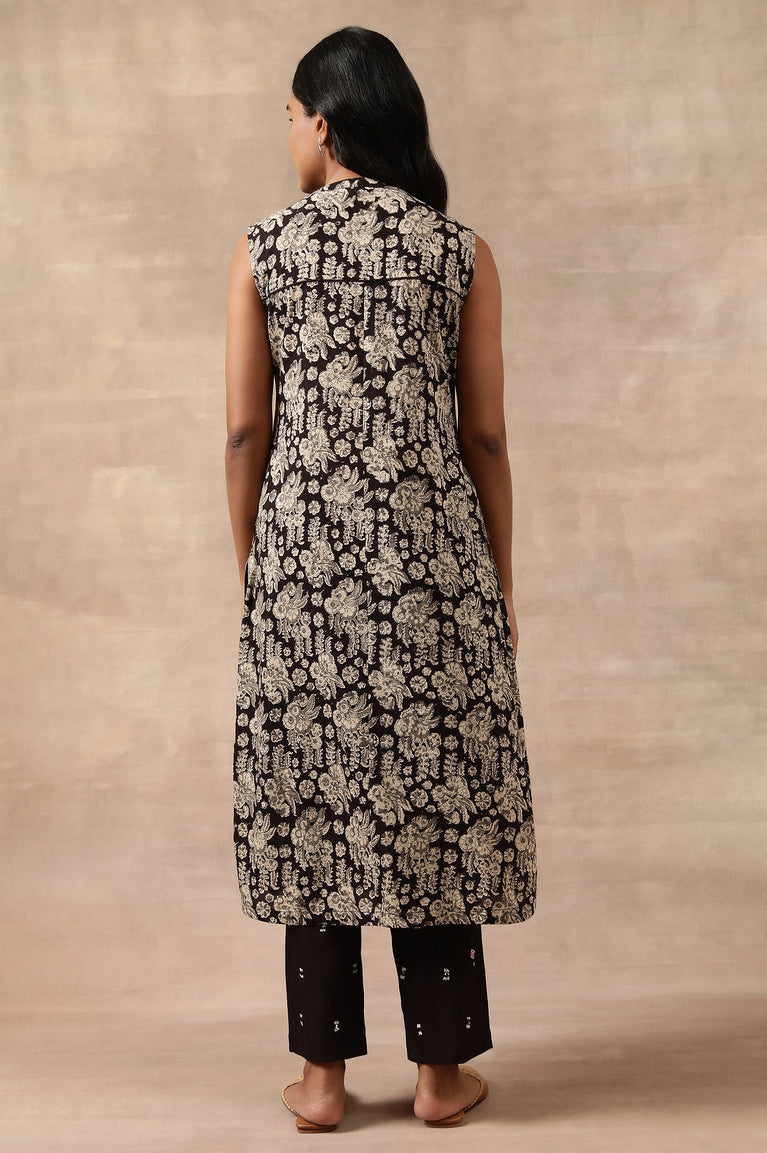A Regular Fit Shirt With Broad Placket Crafted In Hand Block Printed Voile, Features Border Detail On Sleeve Cuff And Hangings Below The Placket.