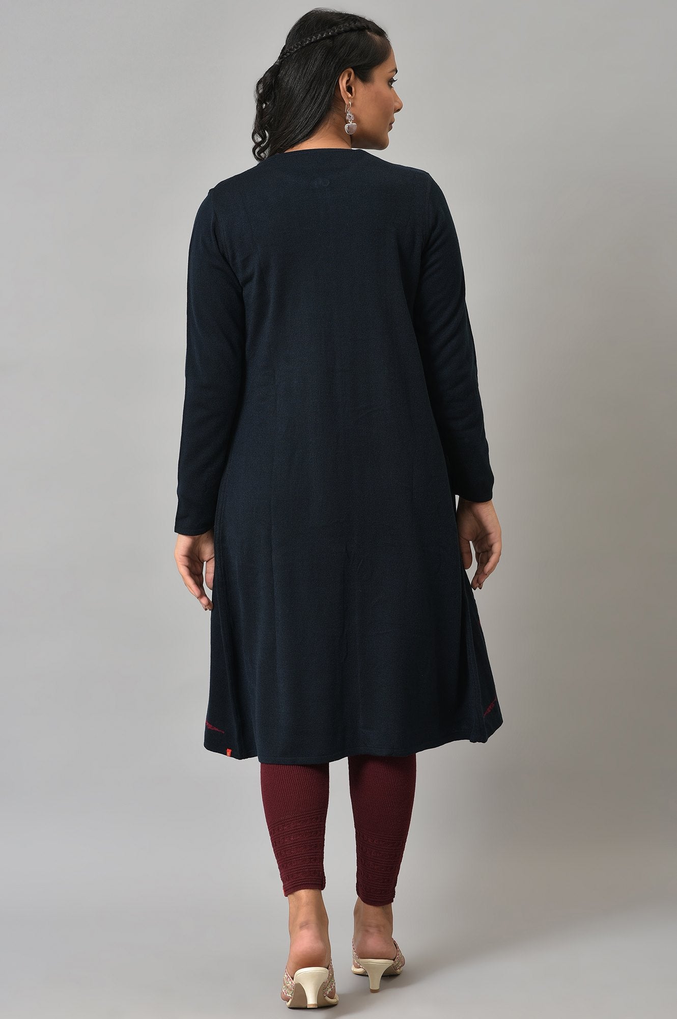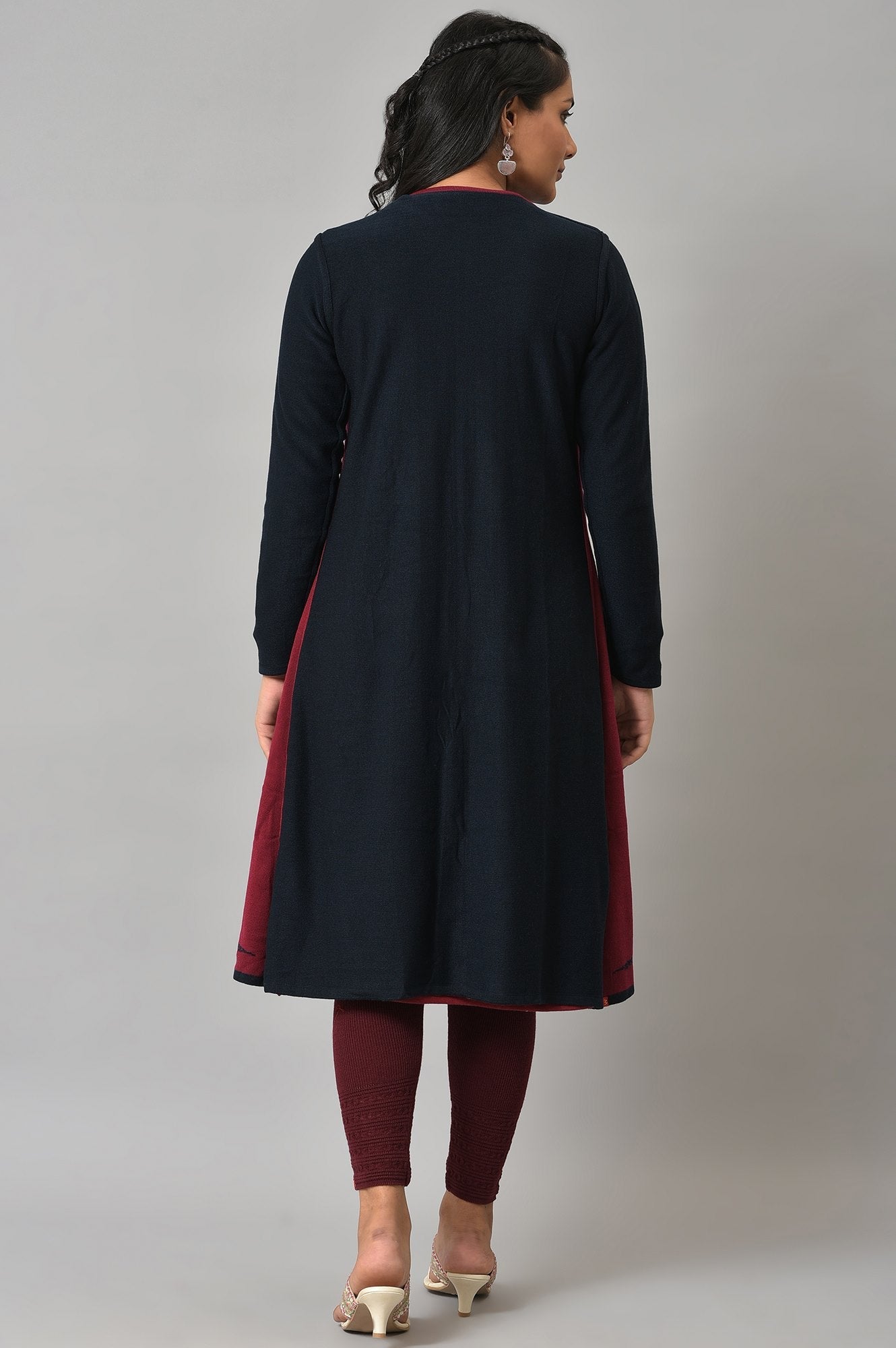 Dual Coloured Front Open Long Line Reversible Cardigan With Minimal Placement Design