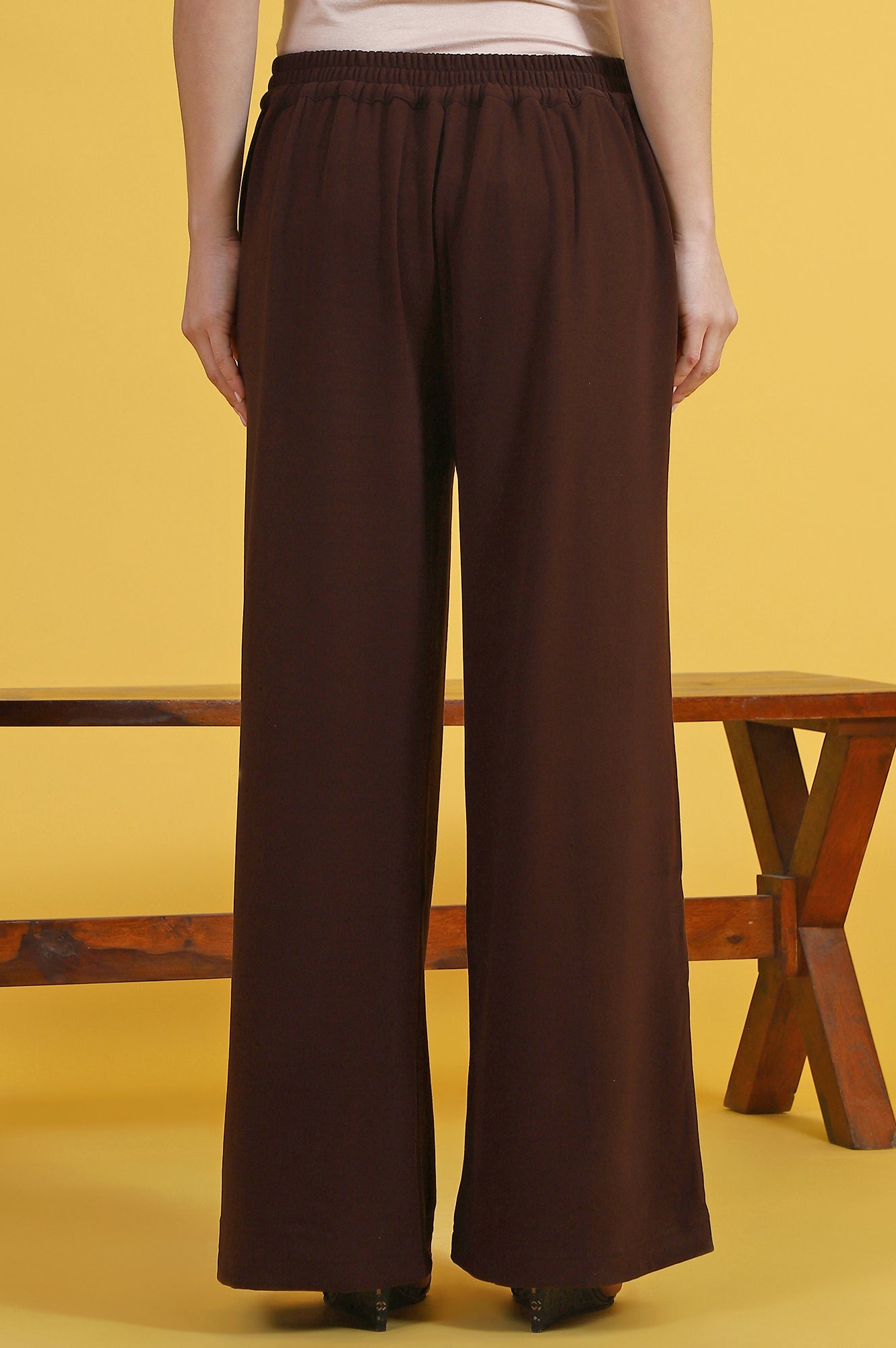 Brown Solid Cashmere Ankle Length Wide Leg Parallel Pants