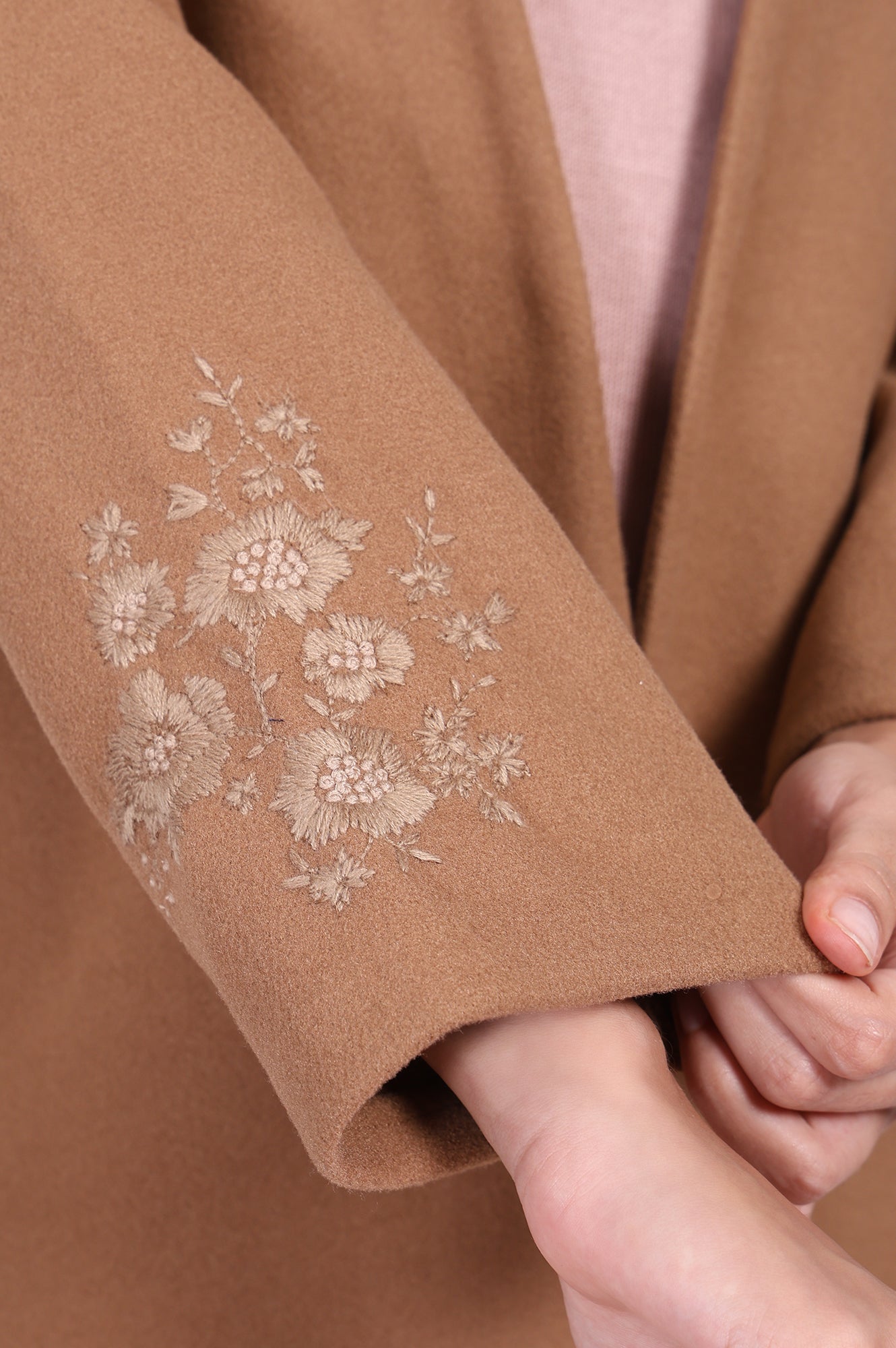 Camel Brown Embroidered Straight Woven Coat