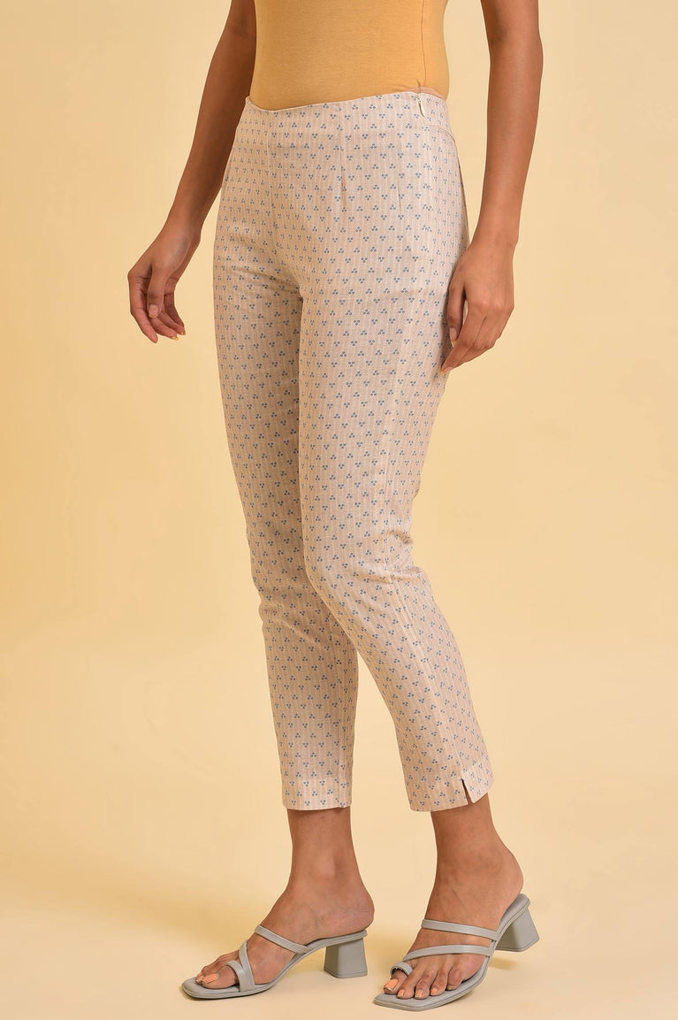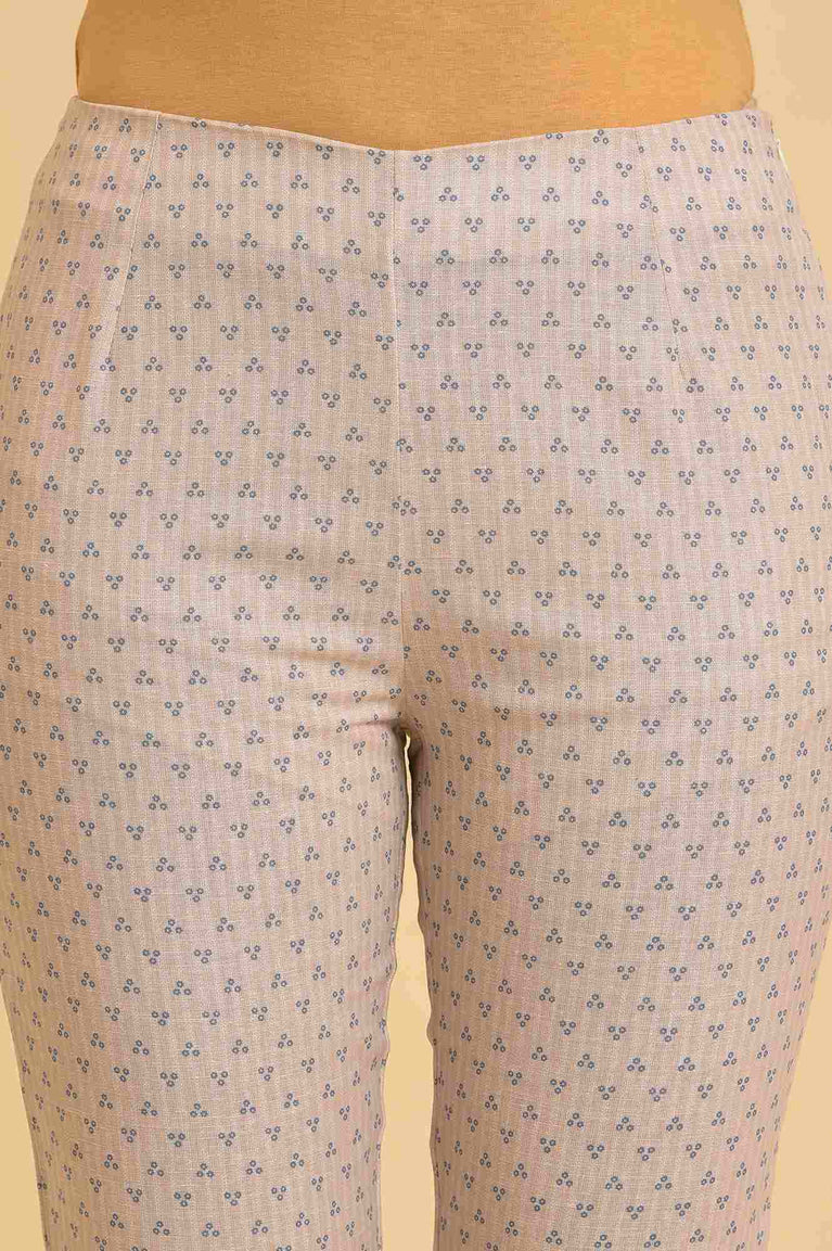 Beige Geometric Printed Rayon Straight Kurta and Slim Pant Set