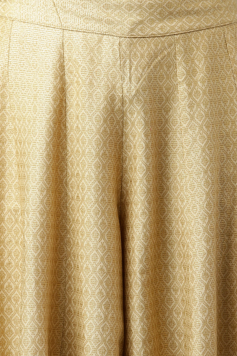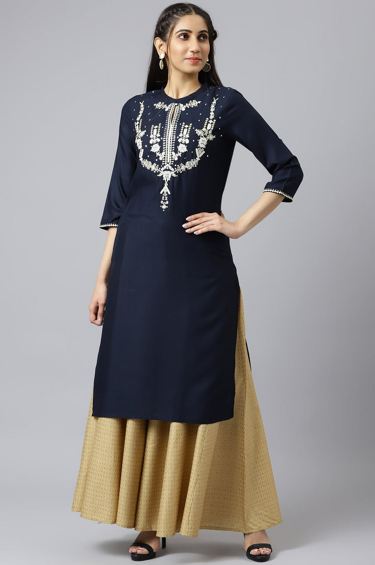 Beige Embroidered A-Line Rayon Kurta with Straight Pant