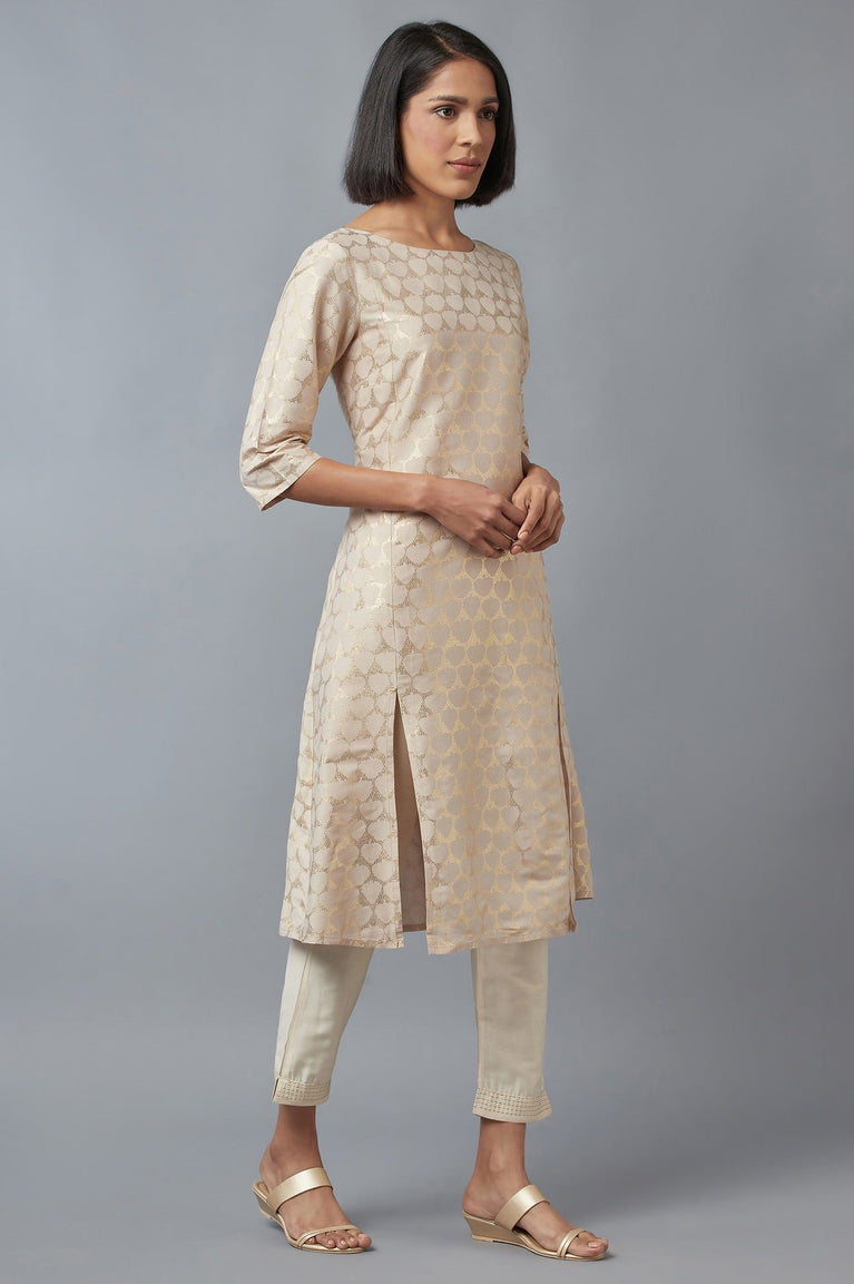 Beige Printed Kurta