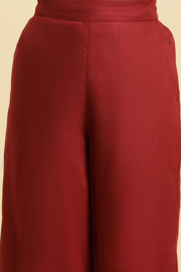 Maroon Solid Straight Pant