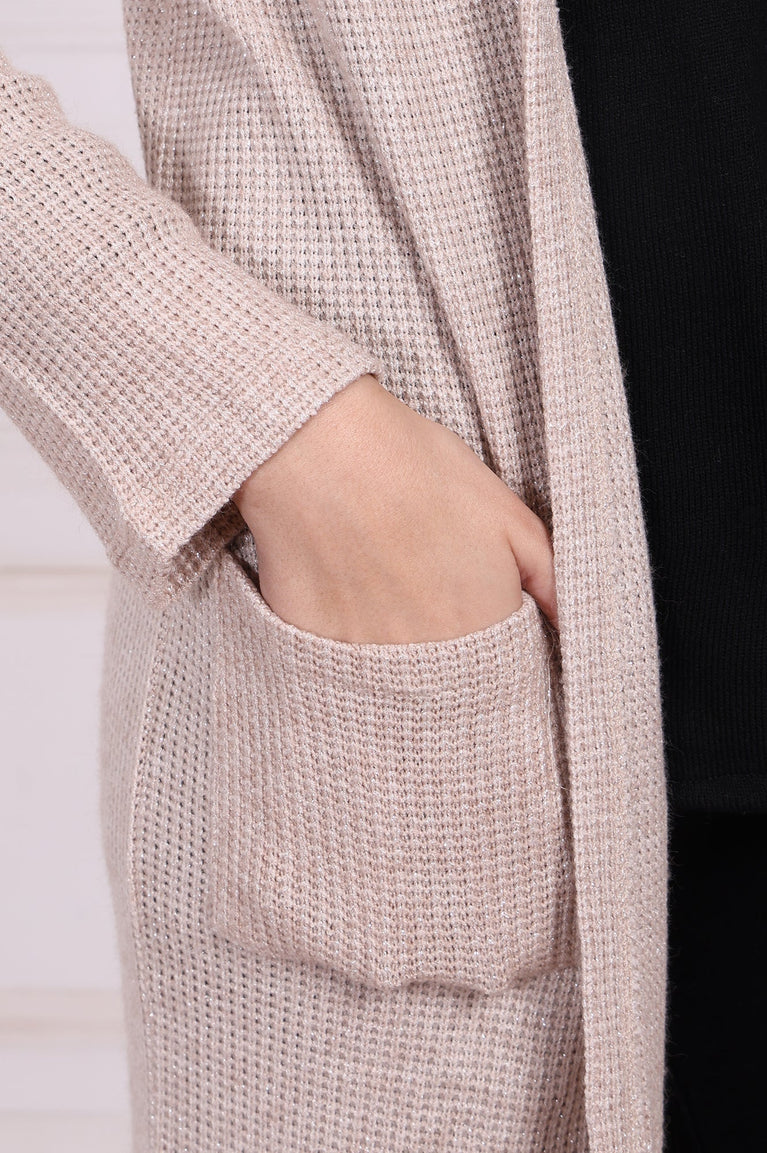 A whisper of warmth and style, this jacket is your new essential for effortless layering. Designed in a serene Oatmeal Beige, this piece brings a touch of understated elegance to any look. This jacket for women features a flowing open-front design that creates a long, lean silhouette, complemented by a soft shawl collar that frames your top beautifully. You'll love the feel of the textured knit fabric, which offers both comfort and a visually interesting finish. It’s styled with full-length sleeves and a straight shape, ensuring it drapes just right without clinging. Two generously sized patch pockets are seamlessly integrated into the front, perfect for keeping your hands warm or stashing small essentials. The opaque fabric and straight hemline complete this minimalist design. Whether you're creating a chic work-from-home look or adding a final touch to a casual outing outfit, this versatile longline knit jacket is a must-have. Its simple yet refined aesthetic makes it an incredibly adaptable piece for any wardrobe, promising endless styling possibilities from season to season. It's the kind of apparel you'll reach for again and again.