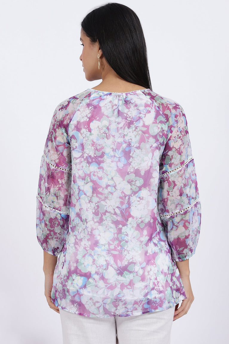 Multicoloured Floral Printed Straight Polyester Top