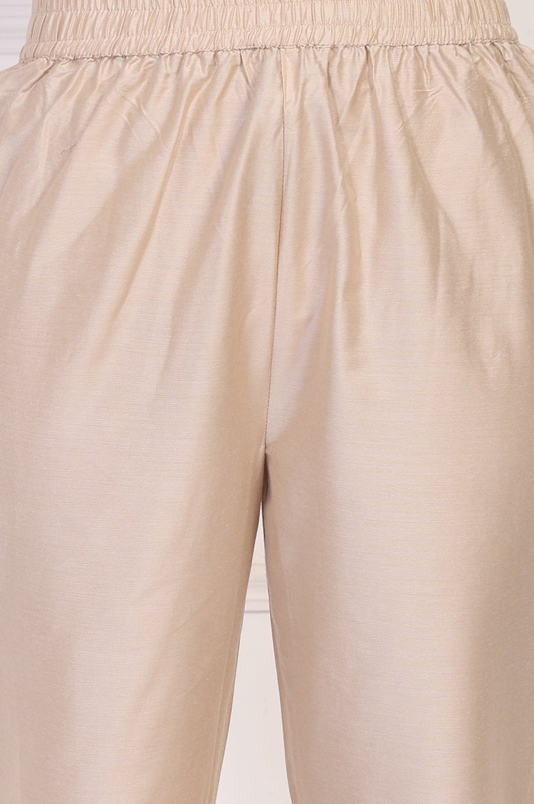 Beige Embroidered A-Line Chanderi Kurta with Straight Pant and Dupatta Set