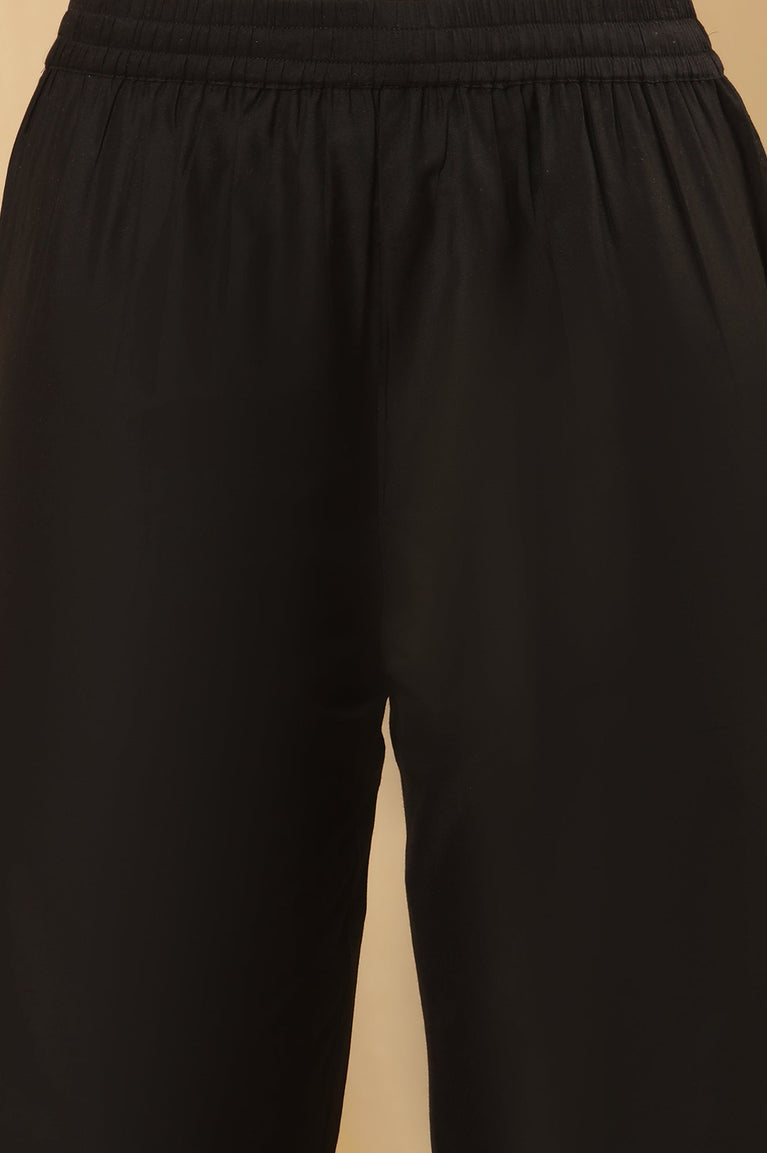 Embrace ethnic elegance with this stunning women's ensemble featuring a kurta, straight pant, and dupatta set. The black kurta, adorned with a beautiful floral print, exudes sophistication and charm. Crafted from 100% viscose, this woven outfit offers a comfortable and flowy feel, perfect for casual outings or festive gatherings. The three-quarter sleeves provide a balance between style and comfort, while the v-neck adds a touch of allure. The flared silhouette of the kurta creates a graceful movement, complementing various body types. This ethnic set seamlessly combines traditional design elements with modern sensibilities, making it a versatile addition to any wardrobe. Whether worn for a family gathering or a casual day out, this ensemble promises to make a lasting impression with its timeless appeal and comfort.