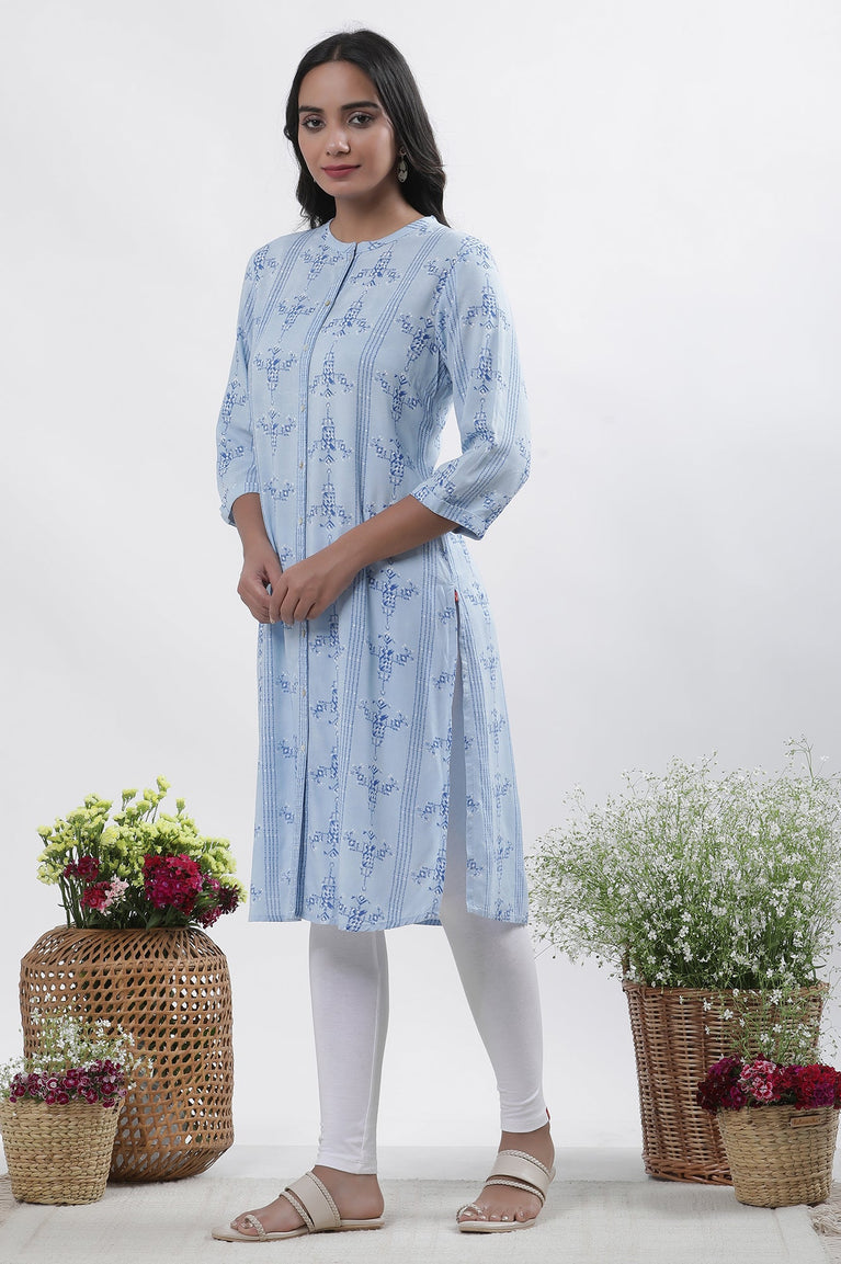 Blue Printed Kurta And Tights Set
