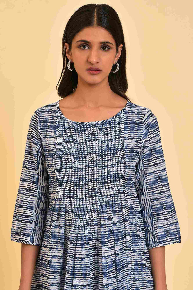 Blue Printed Cotton Dobby Kurta And Tights