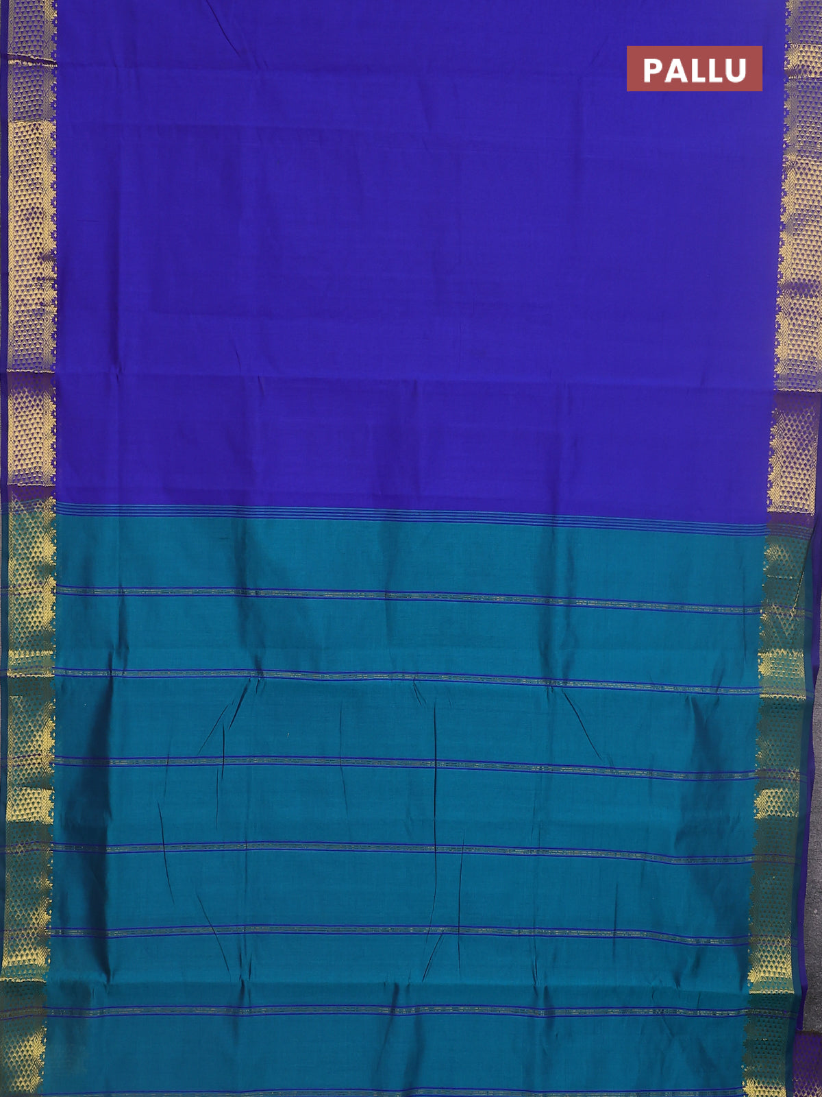 10 yards Poly cotton saree blue and teal green with plain body and zari woven border