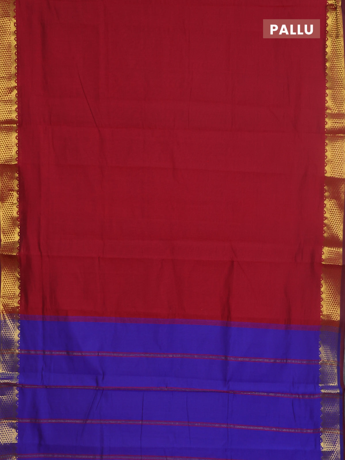 10 yards Poly cotton saree maroon and blue with plain body and zari woven border