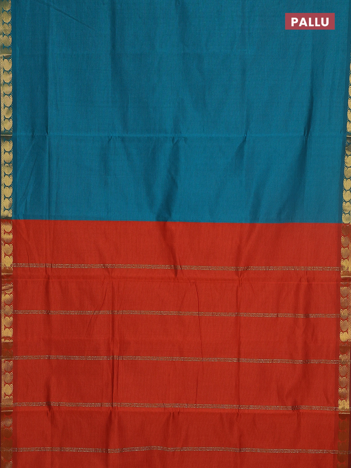 10 yards Poly cotton saree peacock green and orange with plain body and zari woven border