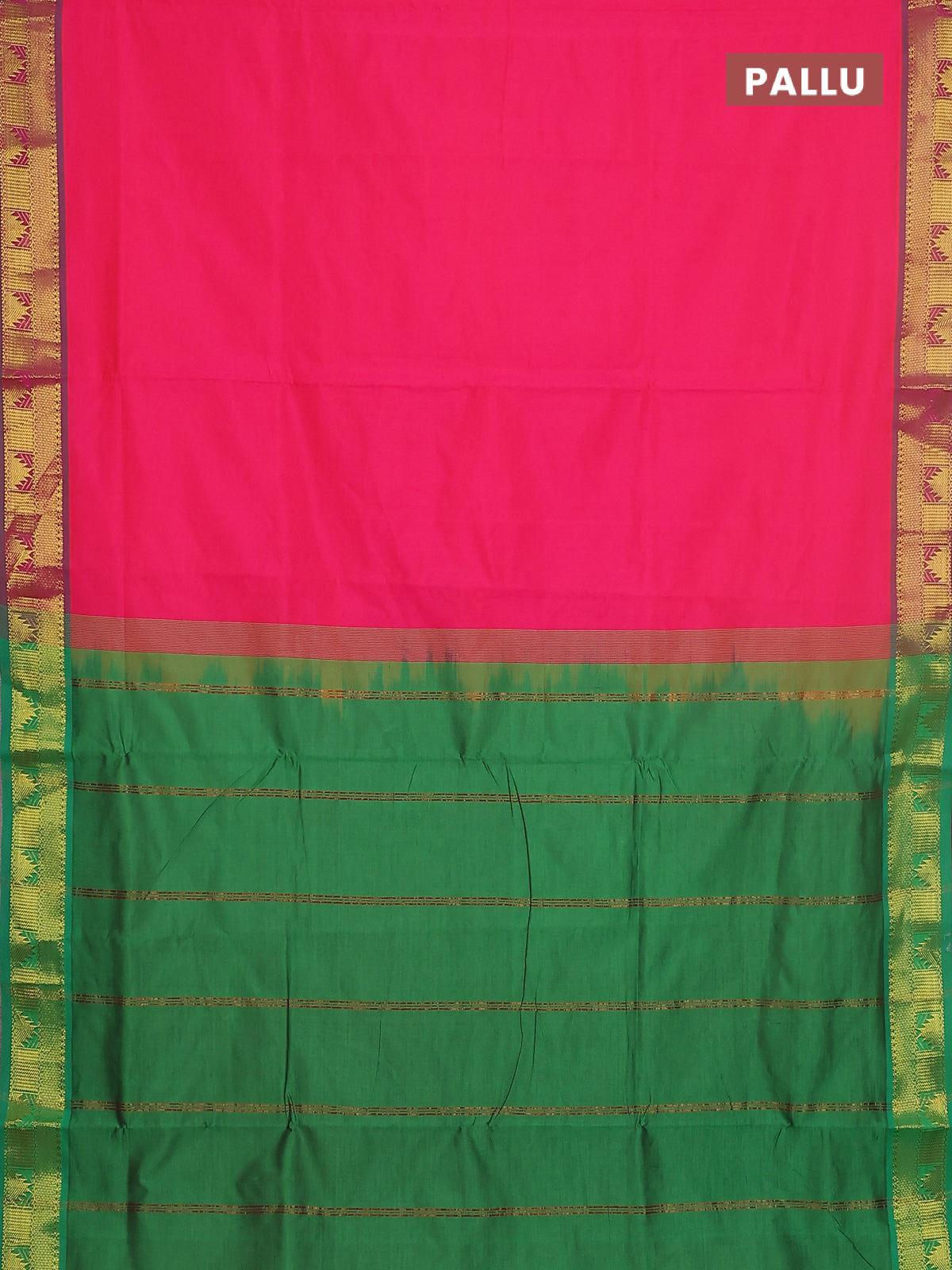 10 yards Poly cotton saree pink and green with plain body and zari woven border