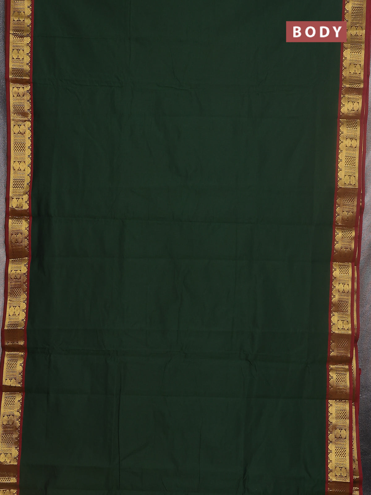 10 yards Poly cotton saree sap green and red with plain body and zari woven border