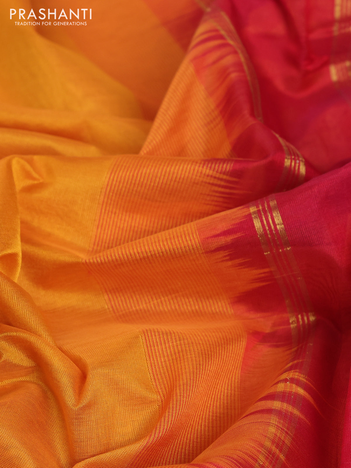 10 Yards silk cotton saree mustard yellow and red with plain body and annam zari woven border