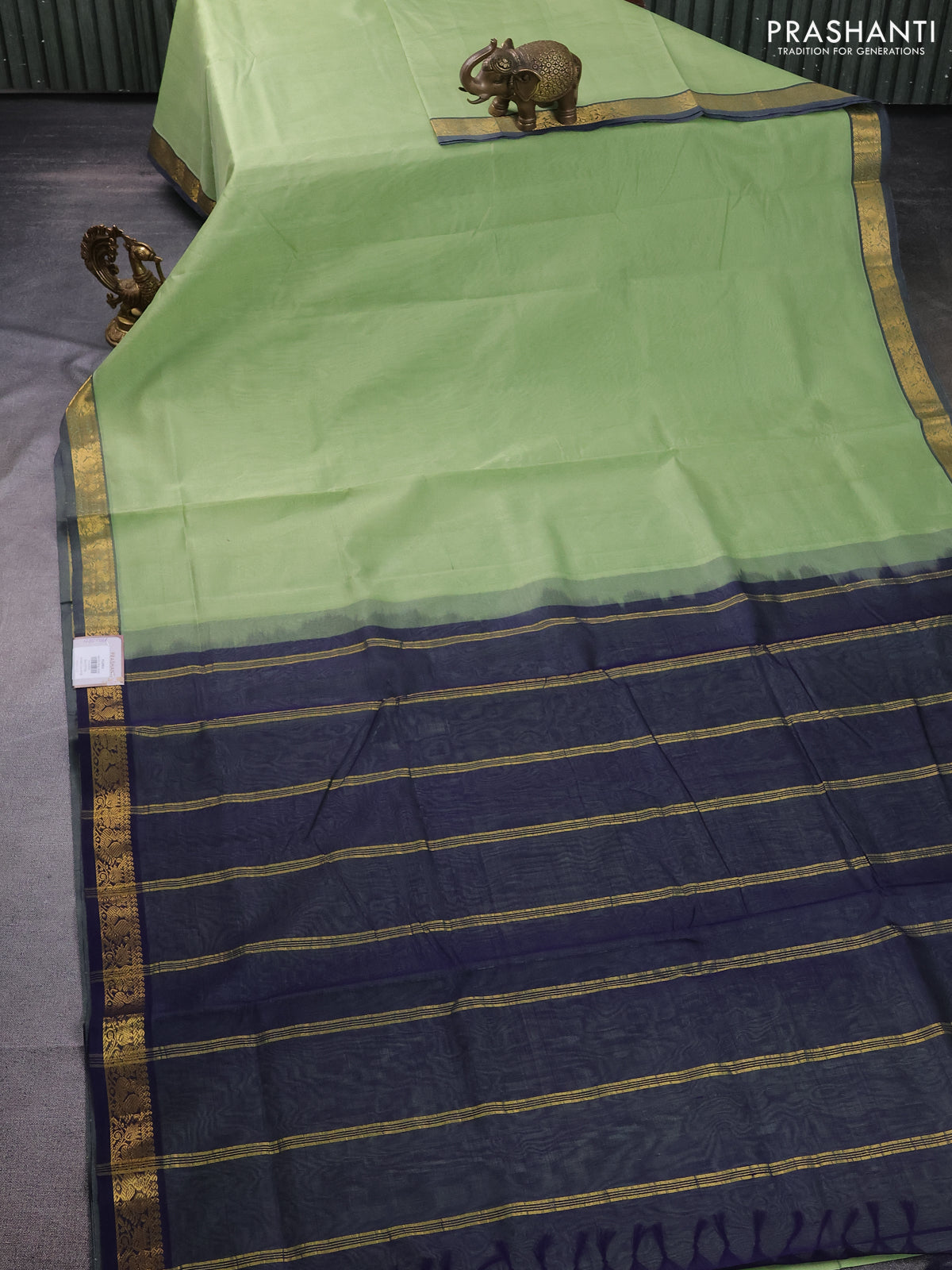 10 Yards silk cotton saree pastel green and navy blue with plain body and annam zari woven border