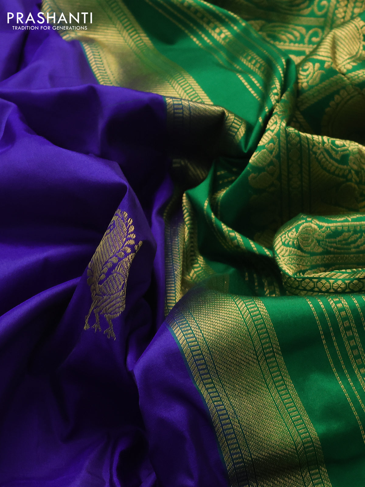 10 Yards silk saree blue and green with annam & paisley zari woven buttas and zari woven border