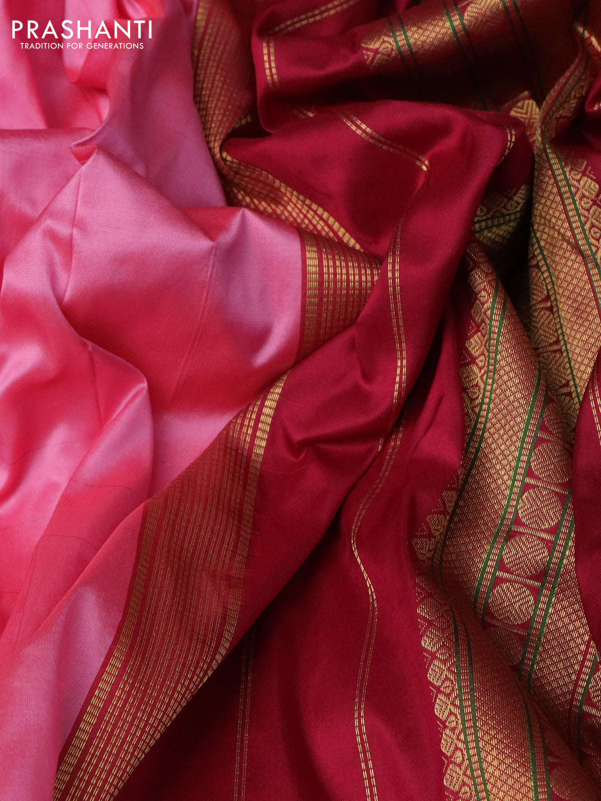 10 Yards silk saree candy pink and maroon with plain body and zari woven border
