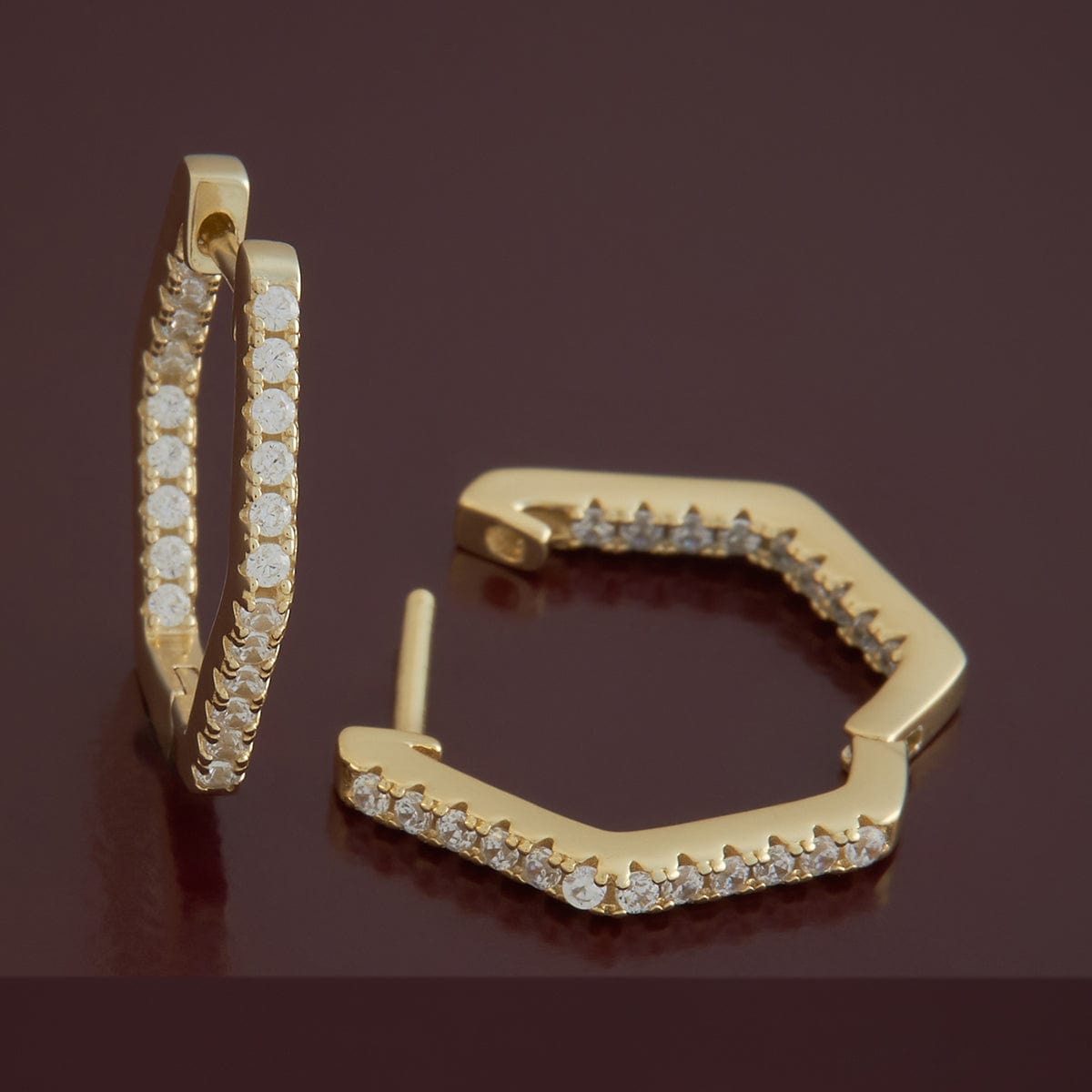 Keep it classic with a white t-shirt and blue denims, perfectly complemented by these chic 92.5 silver earrings. Embellished with sparkling white zircon stones, they’re available in gold, rose gold, or rhodium polish. These versatile earrings add a touch of elegance to your everyday look while exuding effortless charm.