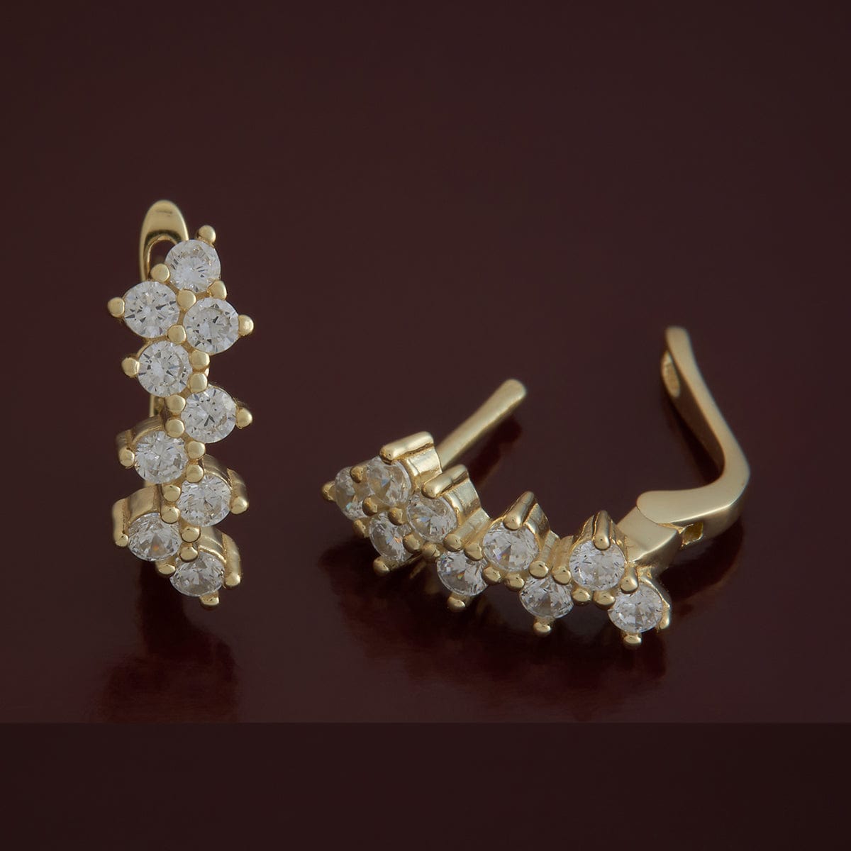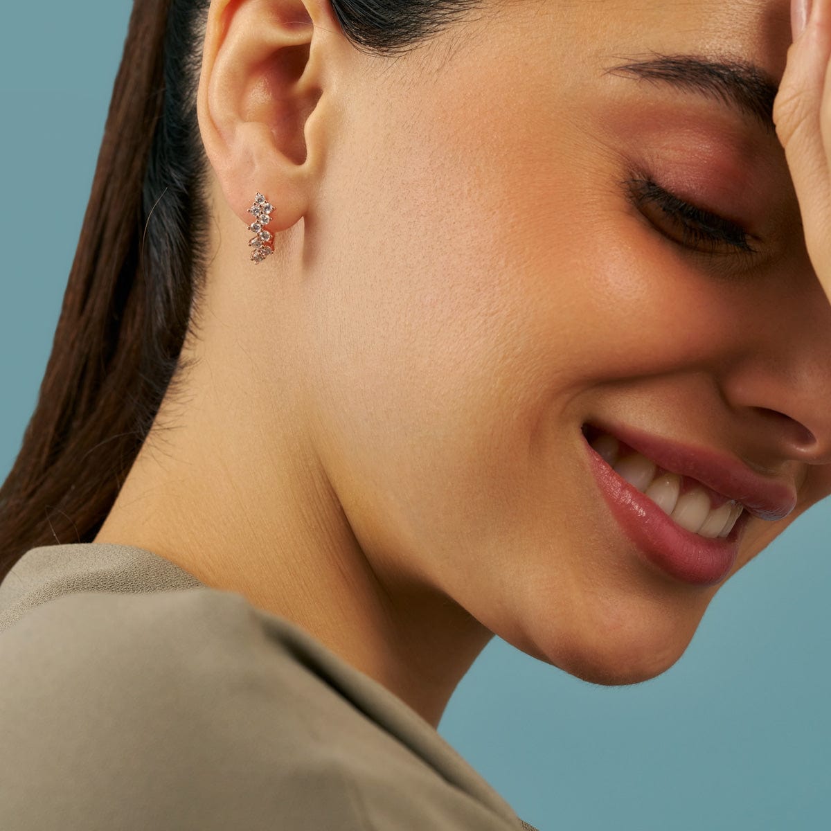 These 92.5 silver earrings, adorned with dazzling white zircon stones, are available in gold, rose gold, or rhodium polish. Their versatile design makes them the perfect accessory to pair with both a simple Indian suit or a stylish Western outfit, adding a touch of elegance and sophistication to any occasion.