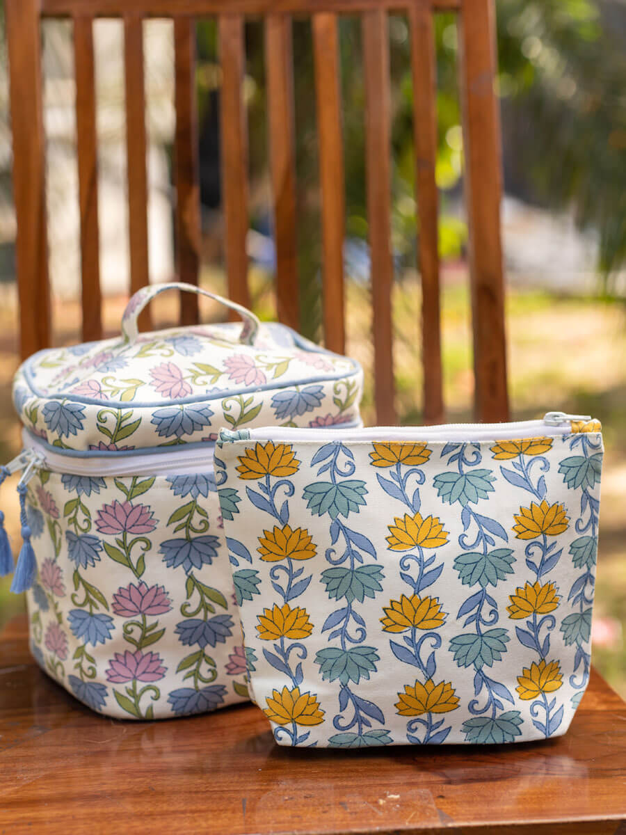 - Hand block print premium travel pouch