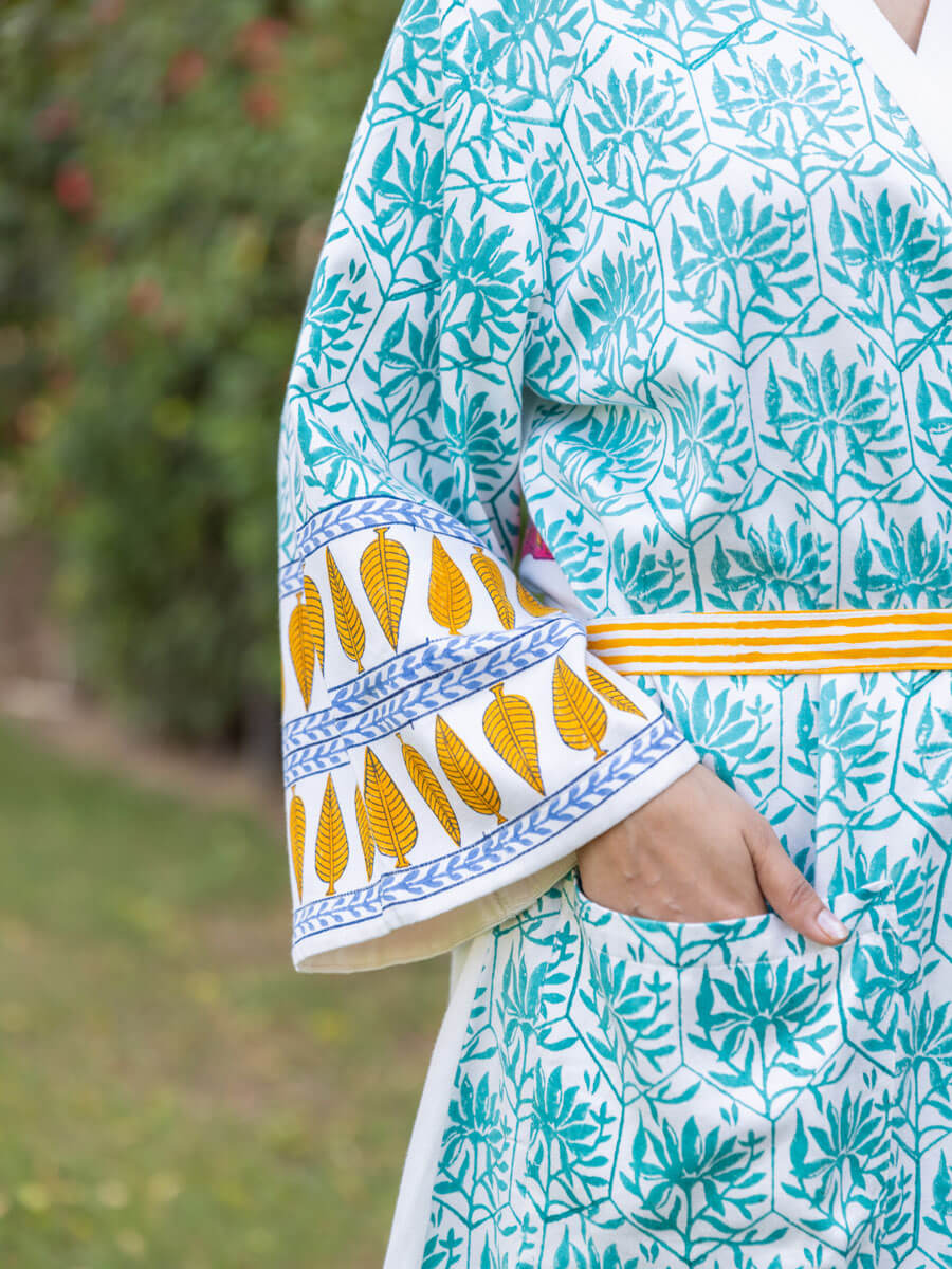 Adbhut Block Printed Luxury Cotton Bath Robe