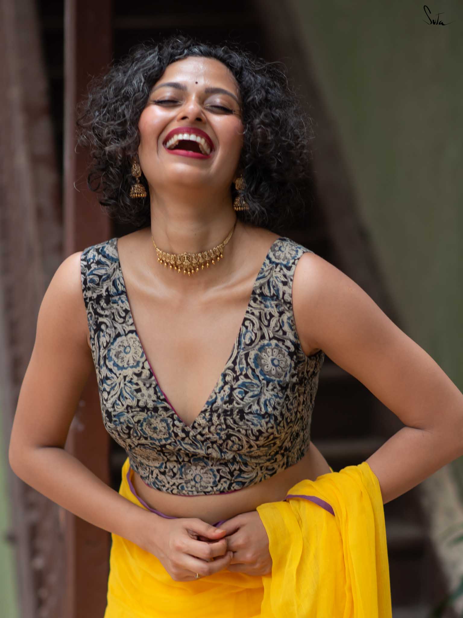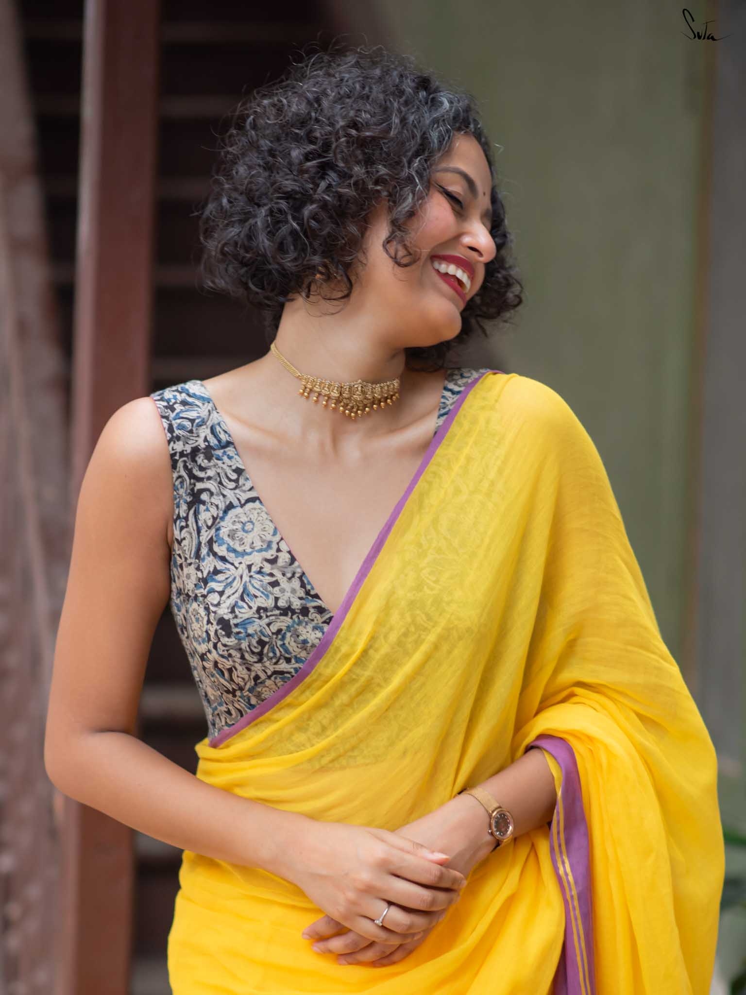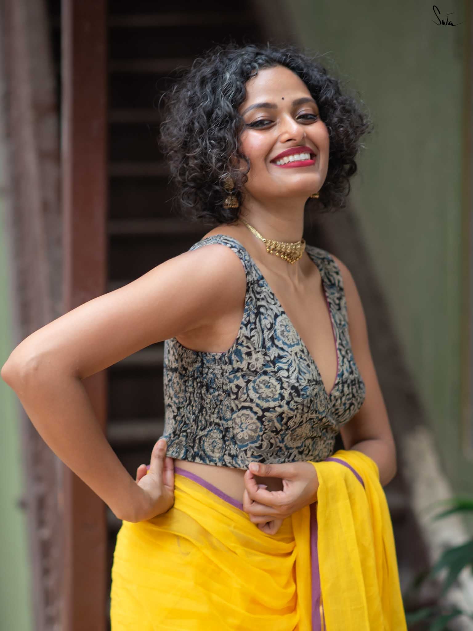 Su, the model is wearing size XS blouse and the saree Haldi hustle
