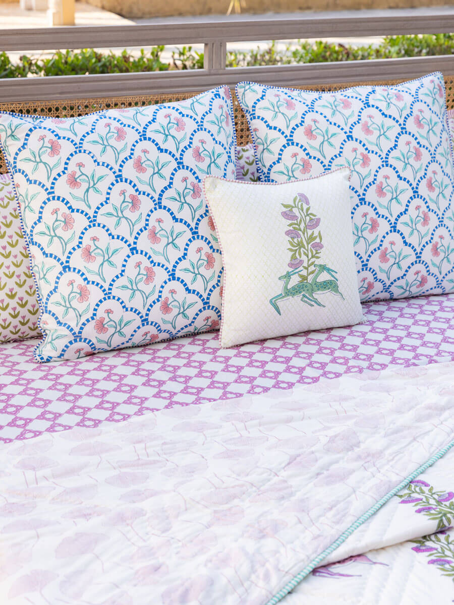 Anand Hand Block Printed Cotton Cushion Cover - 24 Inch