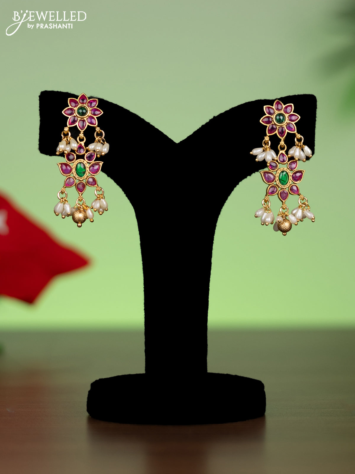 Antique attigai necklace floral design with kemp stones and pearl hangings
