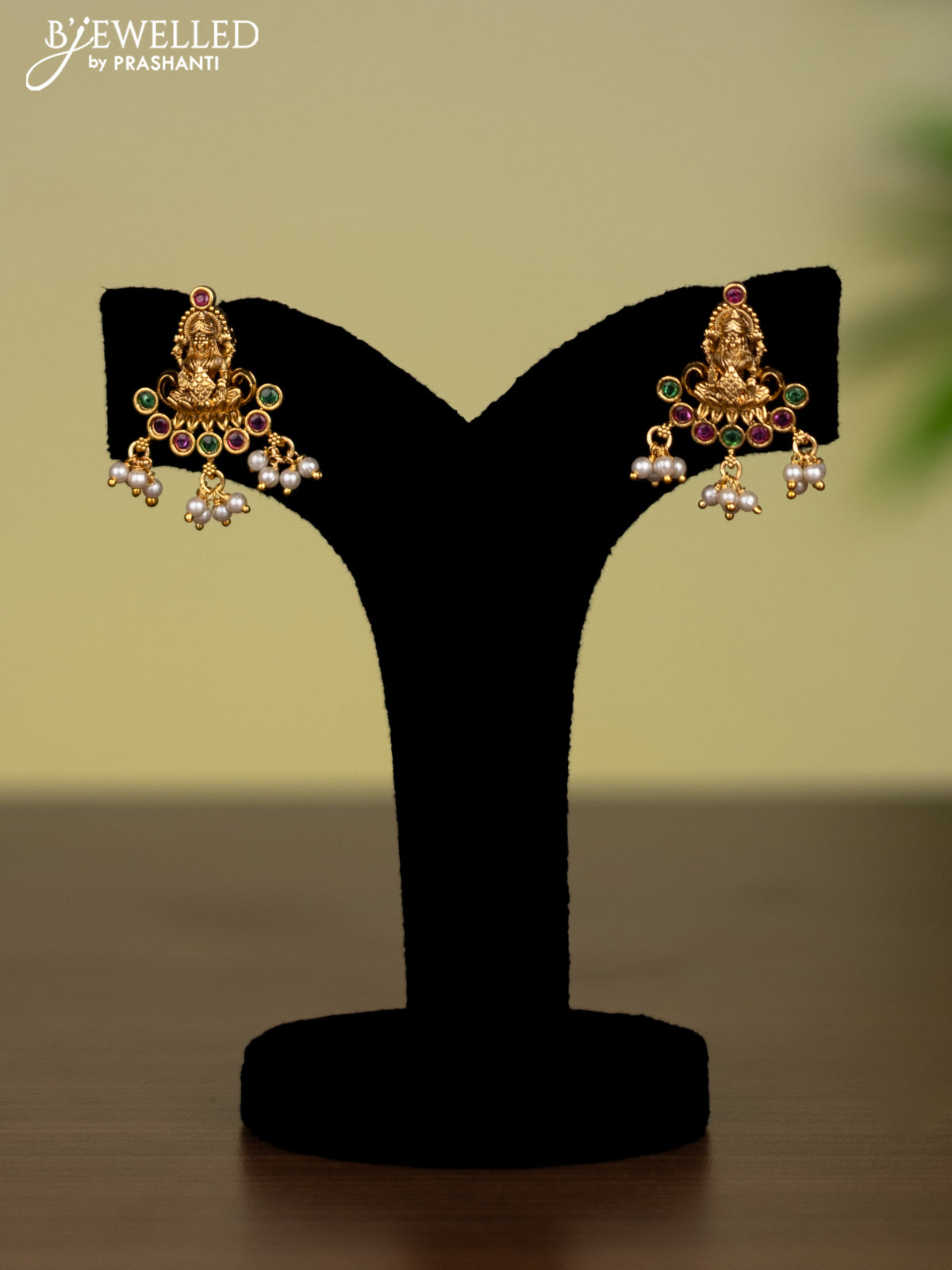 Antique attigai necklace lakshmi pendant with kemp stones and pearl hangings