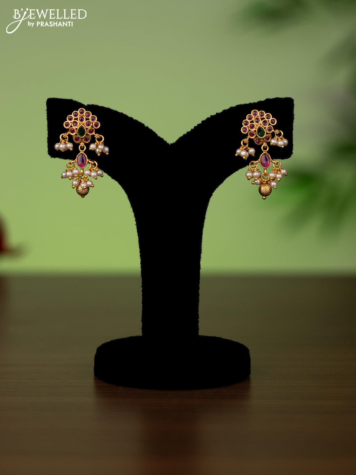 Antique attigai necklace with kemp stones and pearl & golden beads hanging