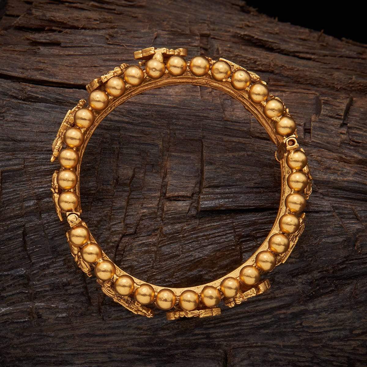 Embrace ethnicity with this beautiful, antique bangle from Kushal’s Antique Jewellery Collection. Its luxe gold polish makes it one-of-a-kind. Crafted from a copper alloy base, it features a secure locking system. Style it with a banarasi saree, kolhapuris and a sleek bun to exude your authentic, desi vibe.