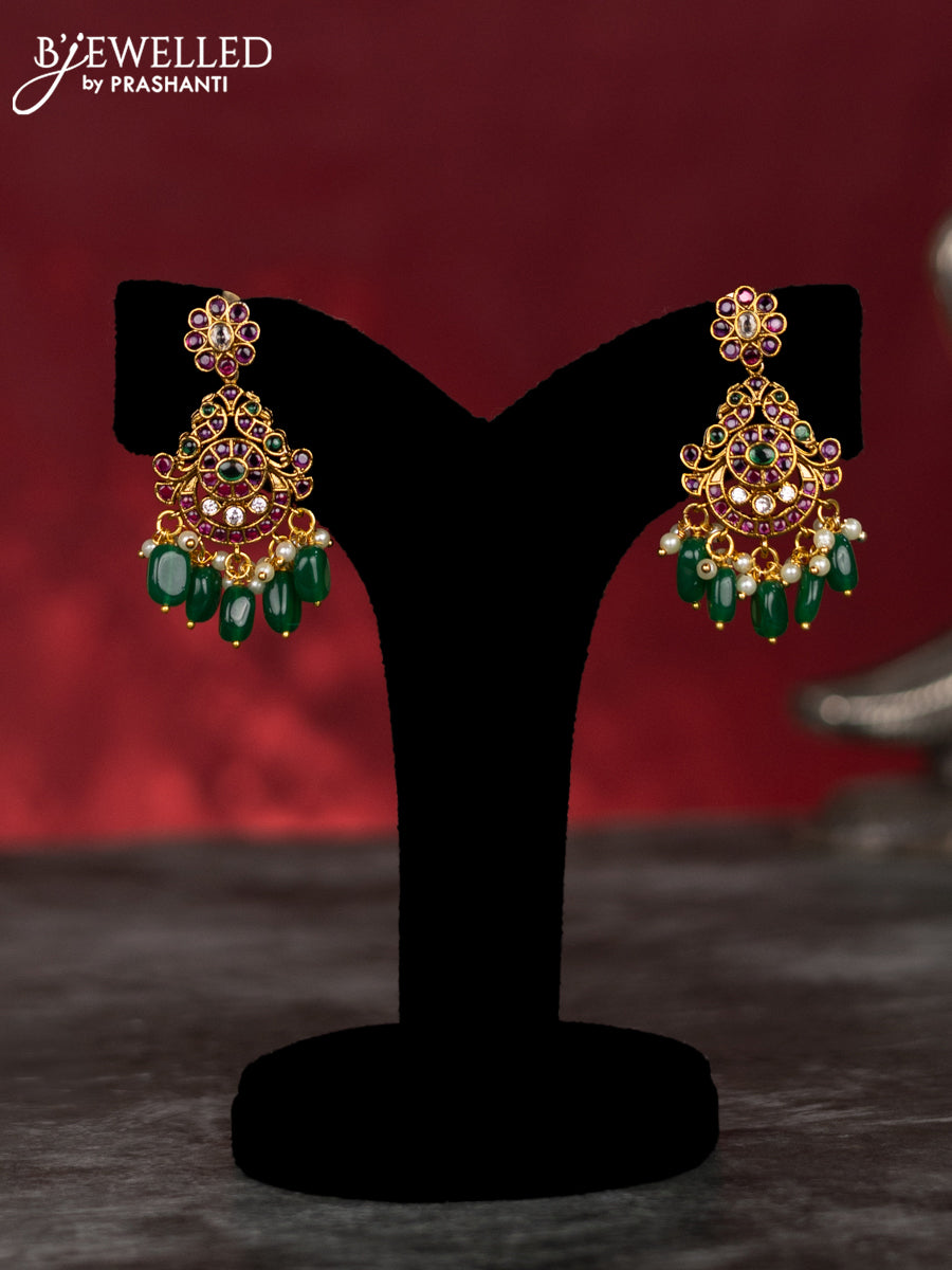 Antique guttapusalu haram floral & manga design with kemp & cz stones and pearl & green beads hangings