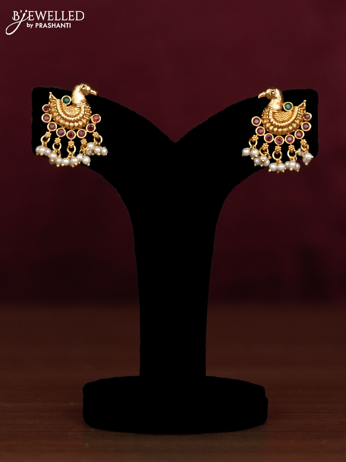 Antique guttapusalu necklace peacock design with kemp stones and pearl hangings
