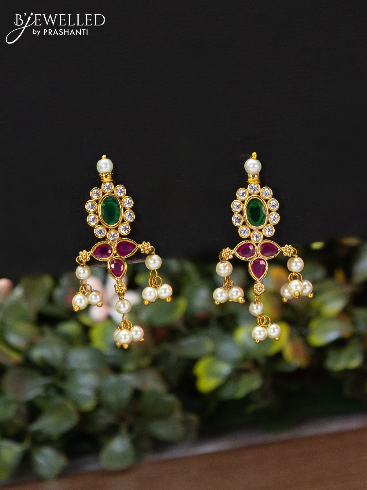 Antique guttapusalu necklace with kemp & cz stones and pearl hangings