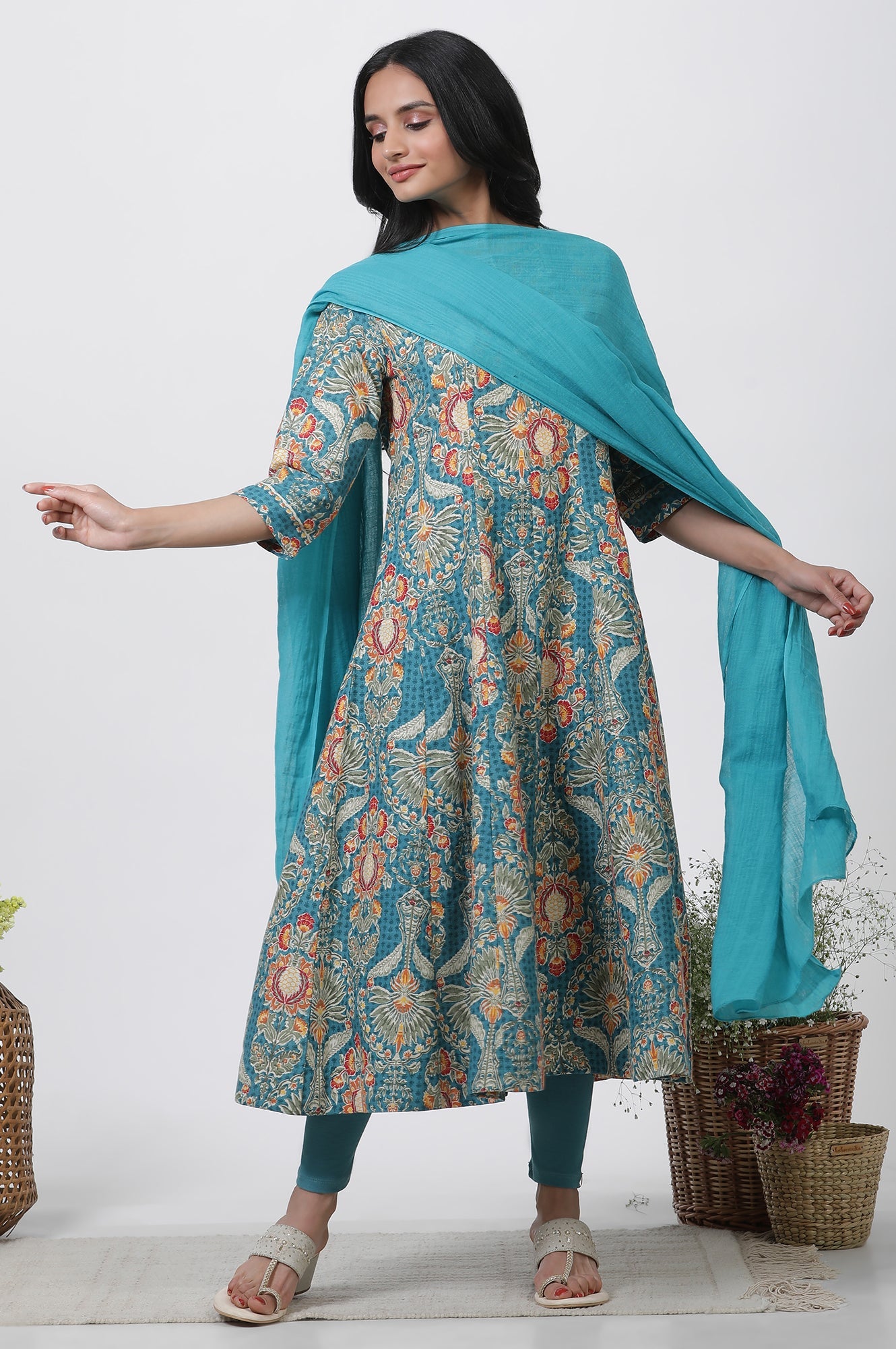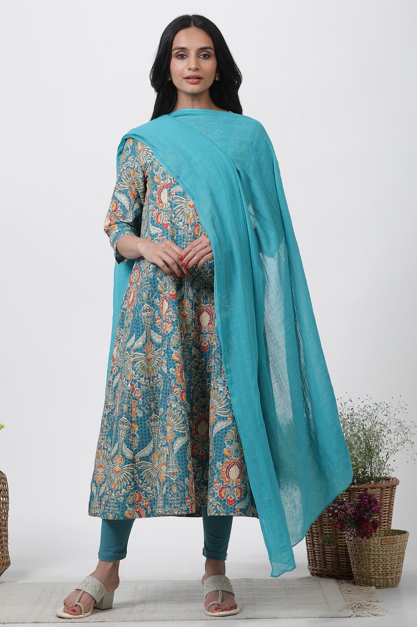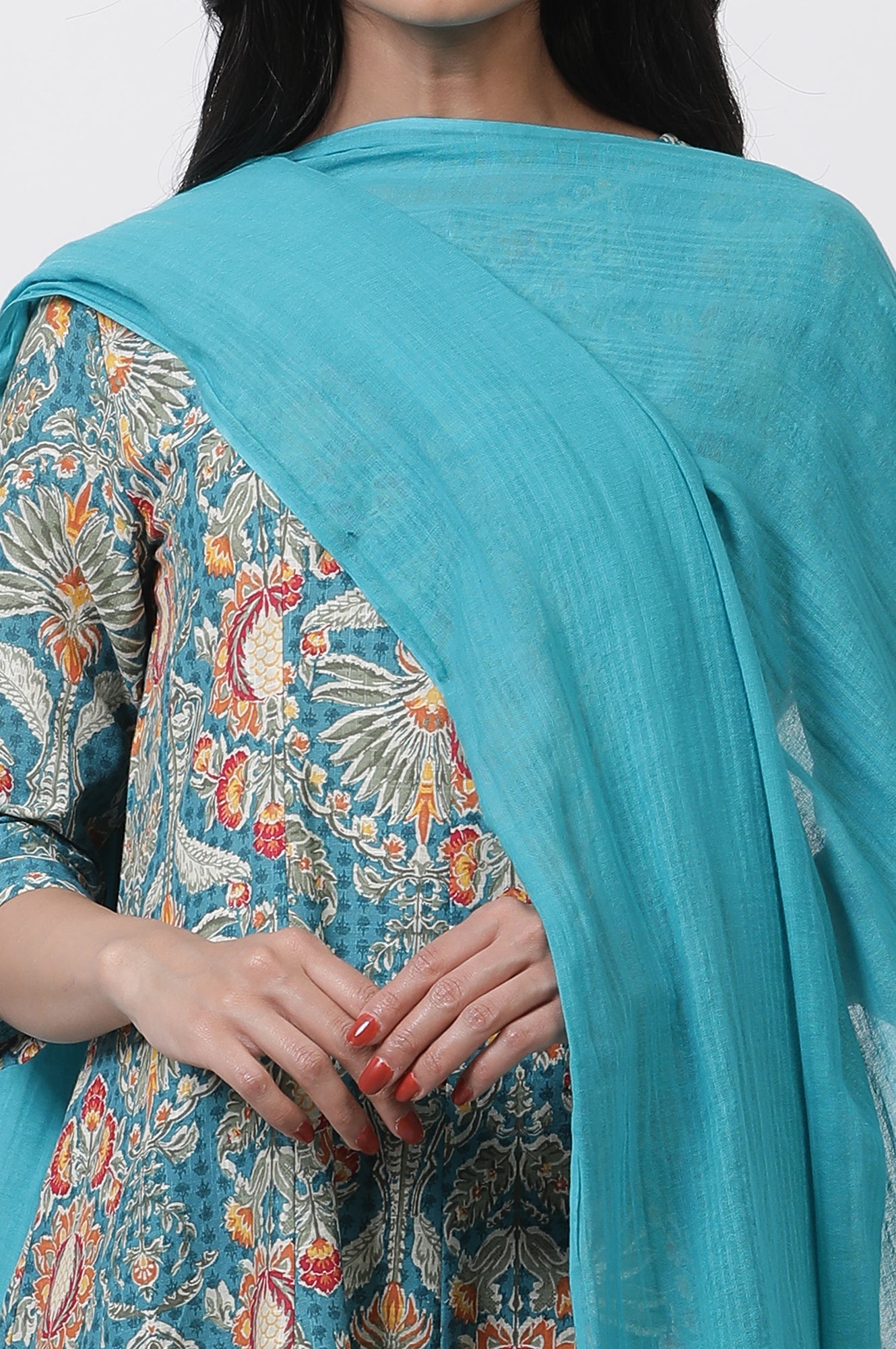 Aqua Blue Drape In Chiffon With Mukaish Details Throughout. It Is Enhanced With A Delicate Lace Edging.