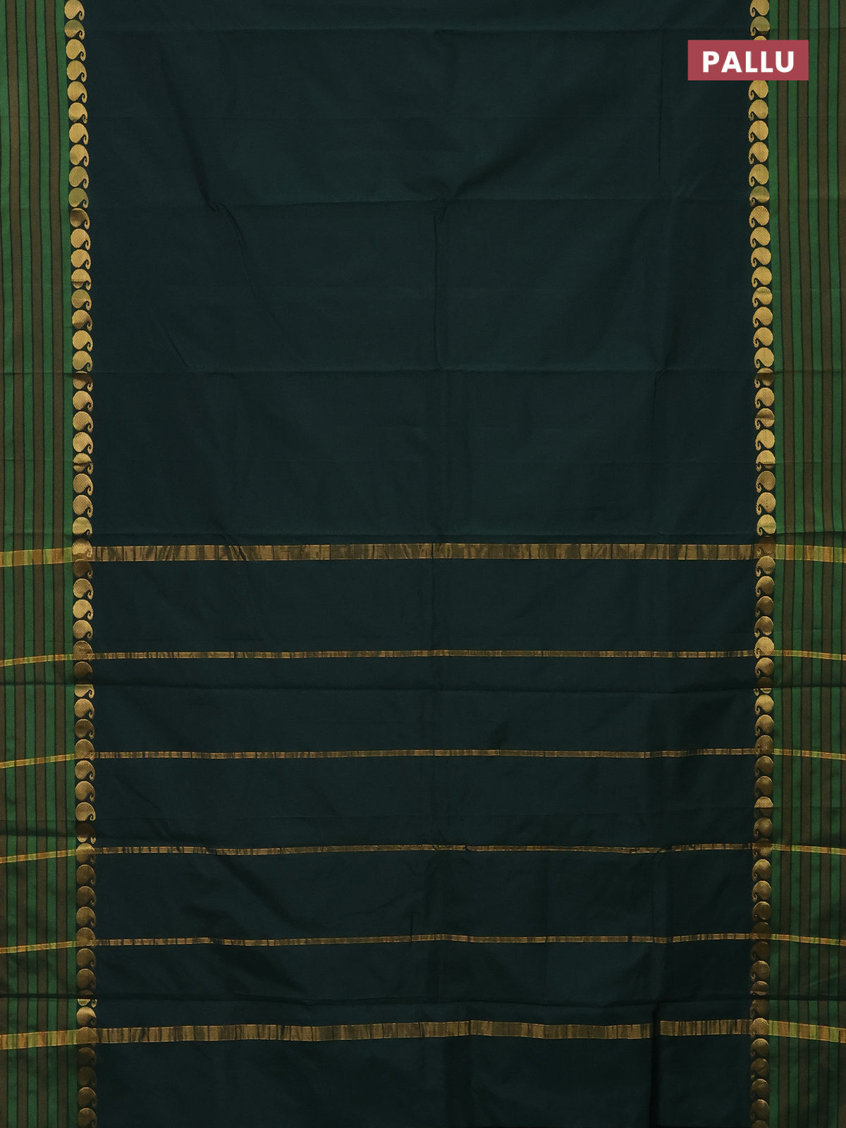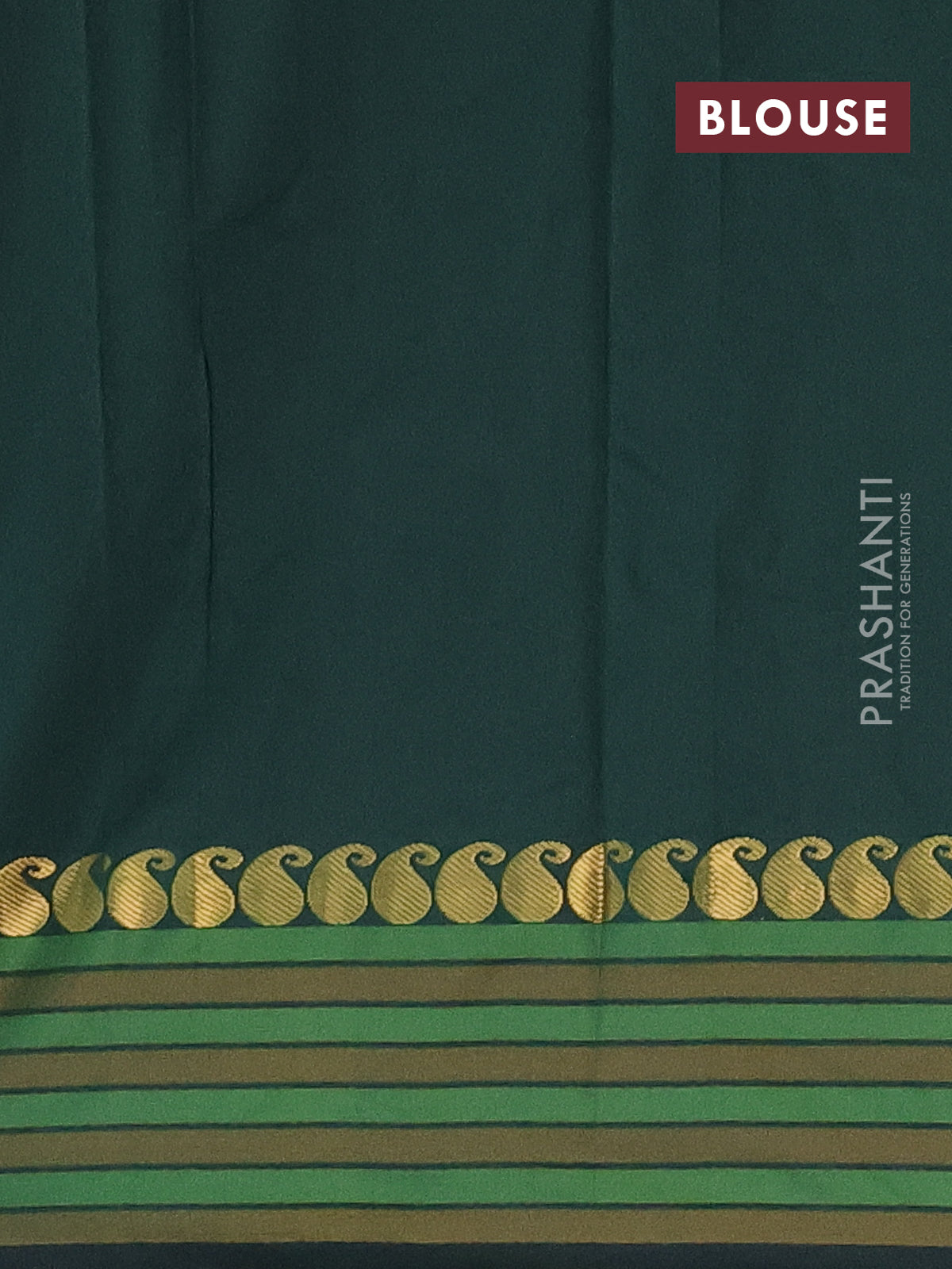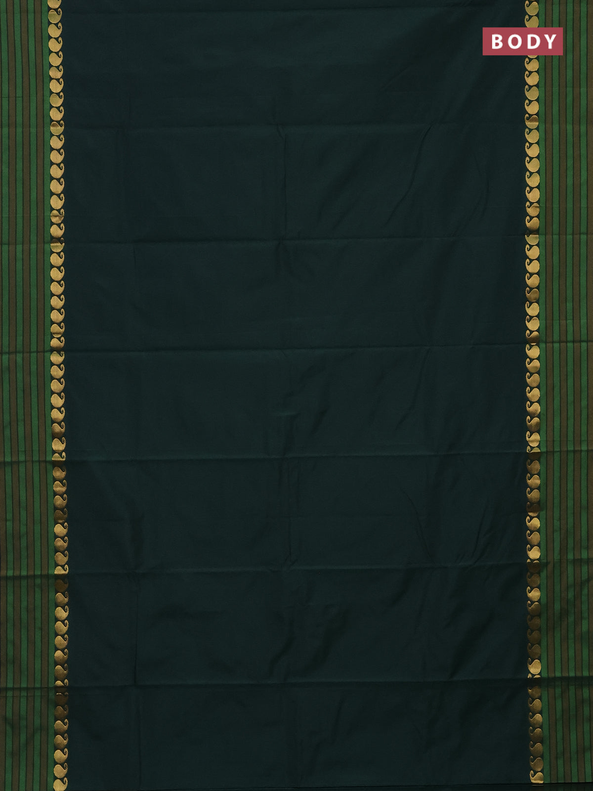 Arani semi silk saree bottle green and mustard yellow with plain body and paisley zari woven simple border