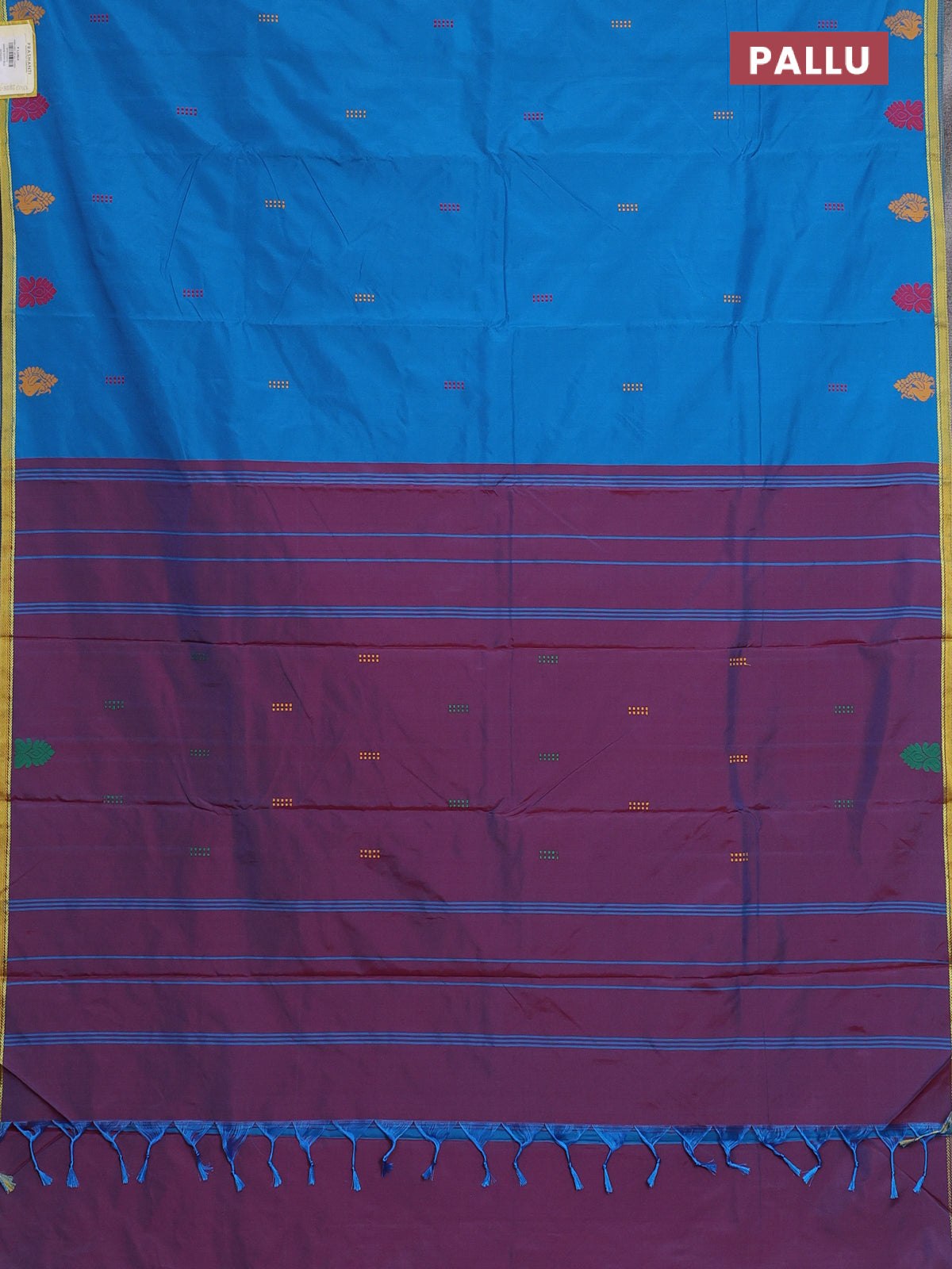 Arani semi silk saree cs blue and dual shade of maroon with thread woven buttas and thread woven butta border