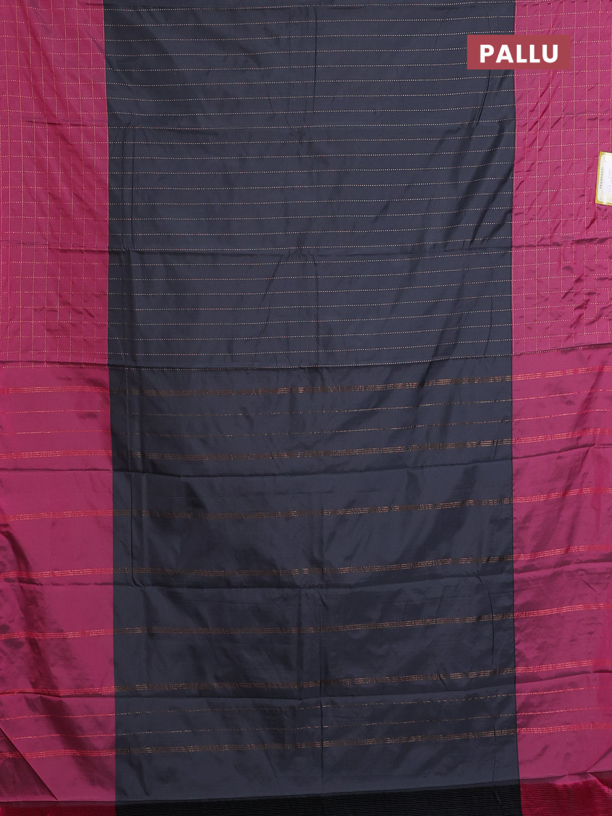Arani semi silk saree dark grey and dark maagenta pink with allover copper zari weaves and zari checked border
