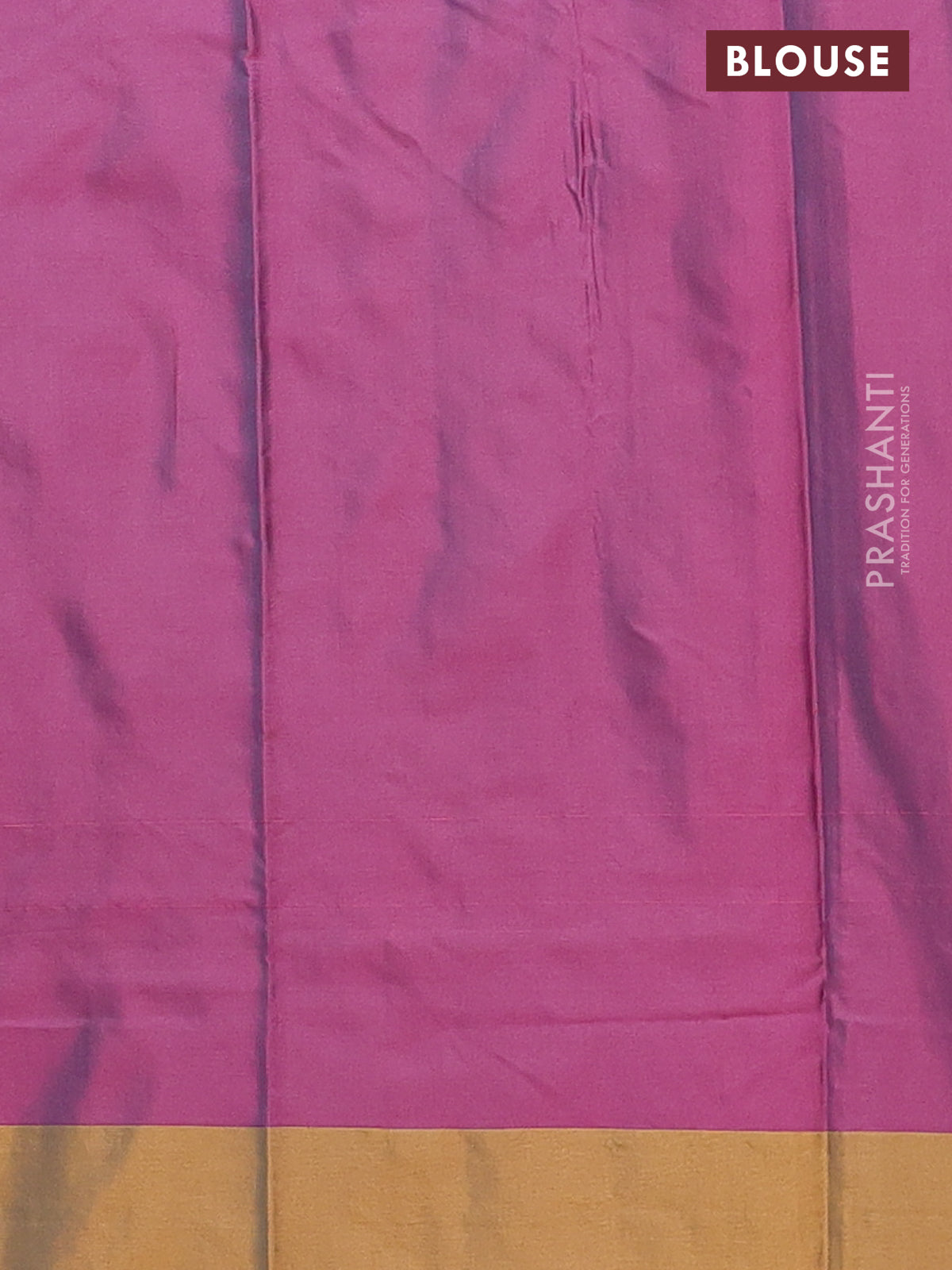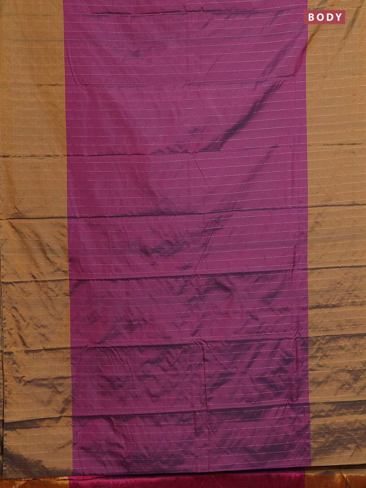 Arani semi silk saree dark purple and dark mustard with allover copper zari weaves and zari checked border
