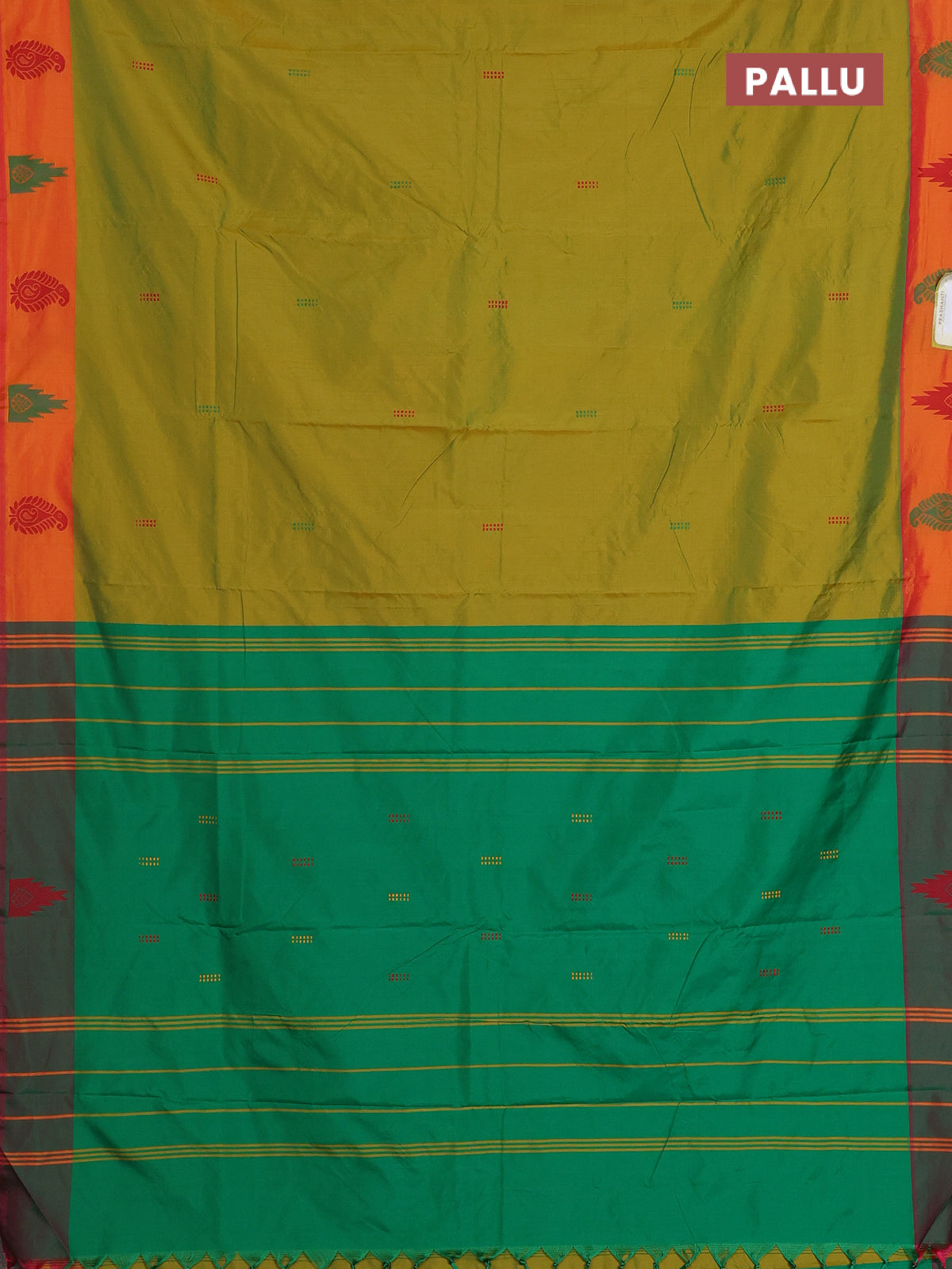 Arani semi silk saree dual shade of mustard green and green with thread woven buttas and thread woven butta border