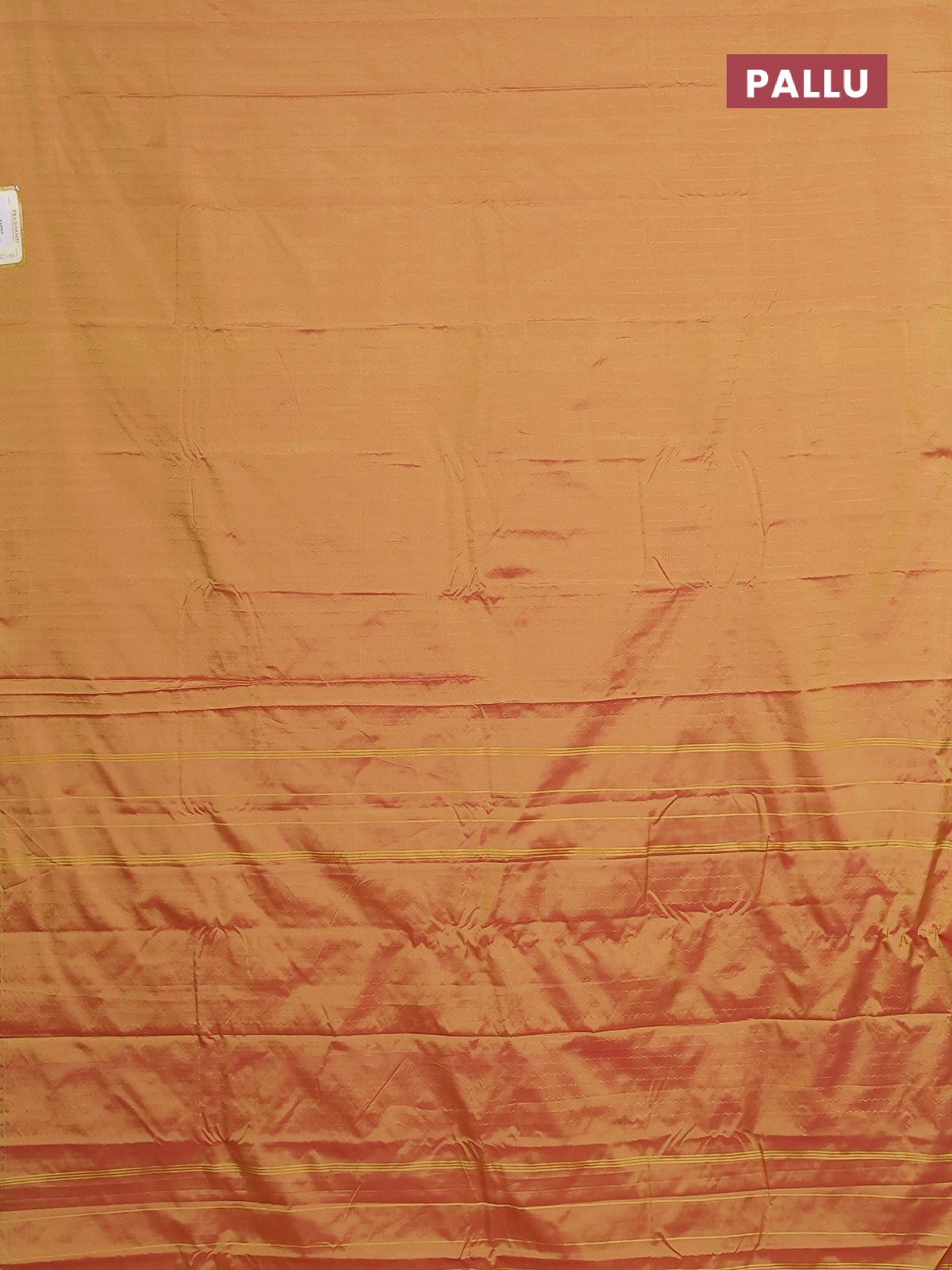 Arani semi silk saree dual shade of mustard with allover copper zari weaves in borderless style