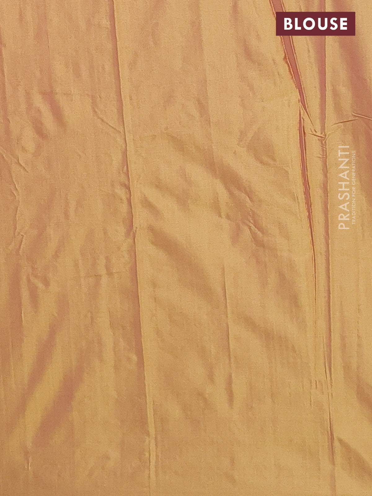 Arani semi silk saree dual shade of mustard with allover silver zari weaves in borderless style