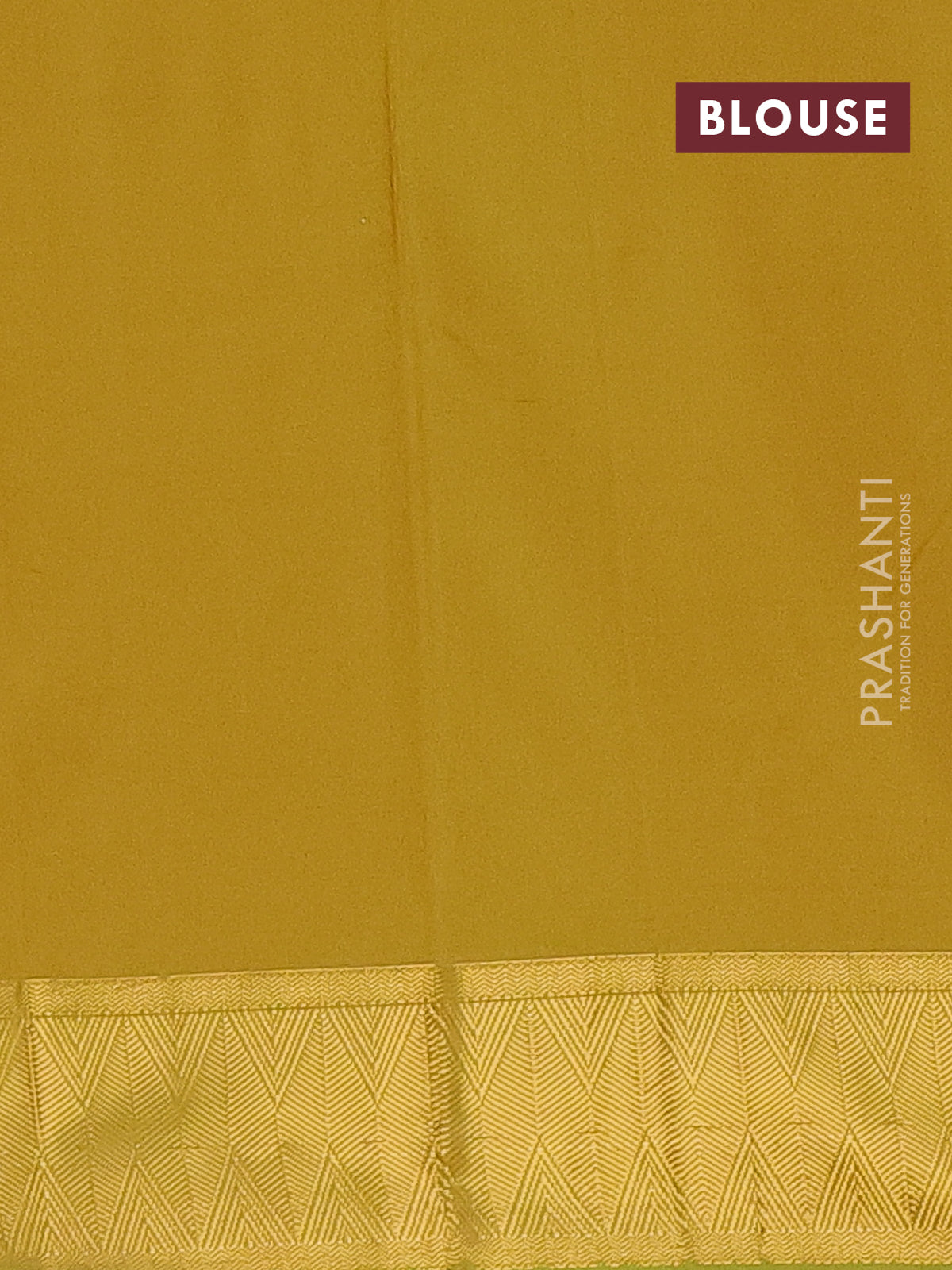 Arani semi silk saree dual shade of mustard yellow with zari woven thilak buttas and zari woven border