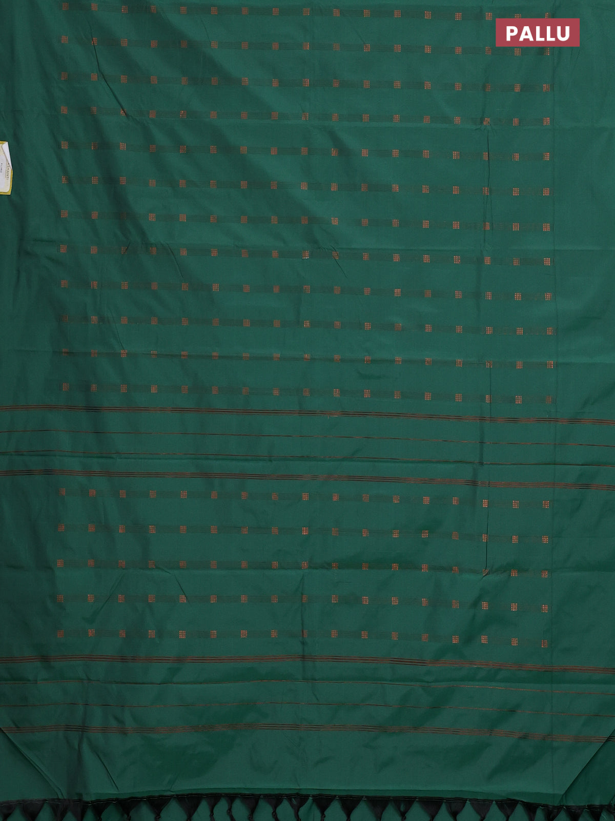 Arani semi silk saree greeen with copper zari woven buttas in borderless style