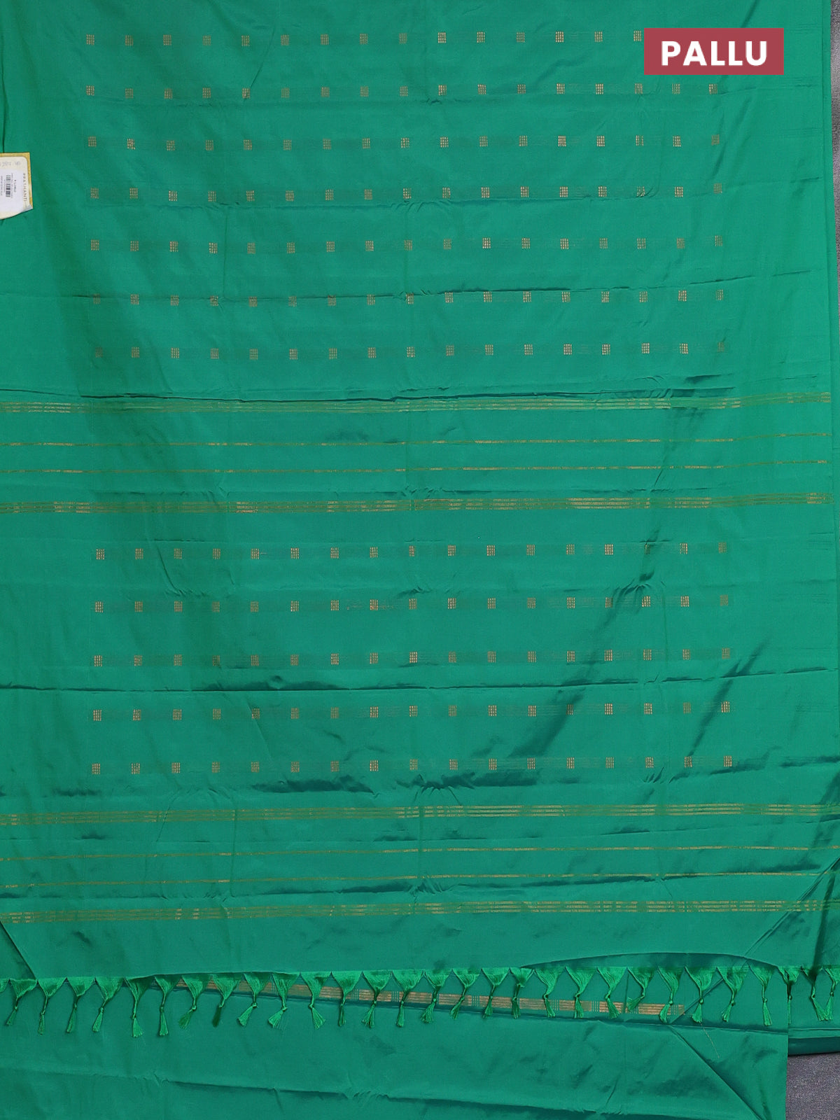 Arani semi silk saree green with copper zari woven buttas in borderless style