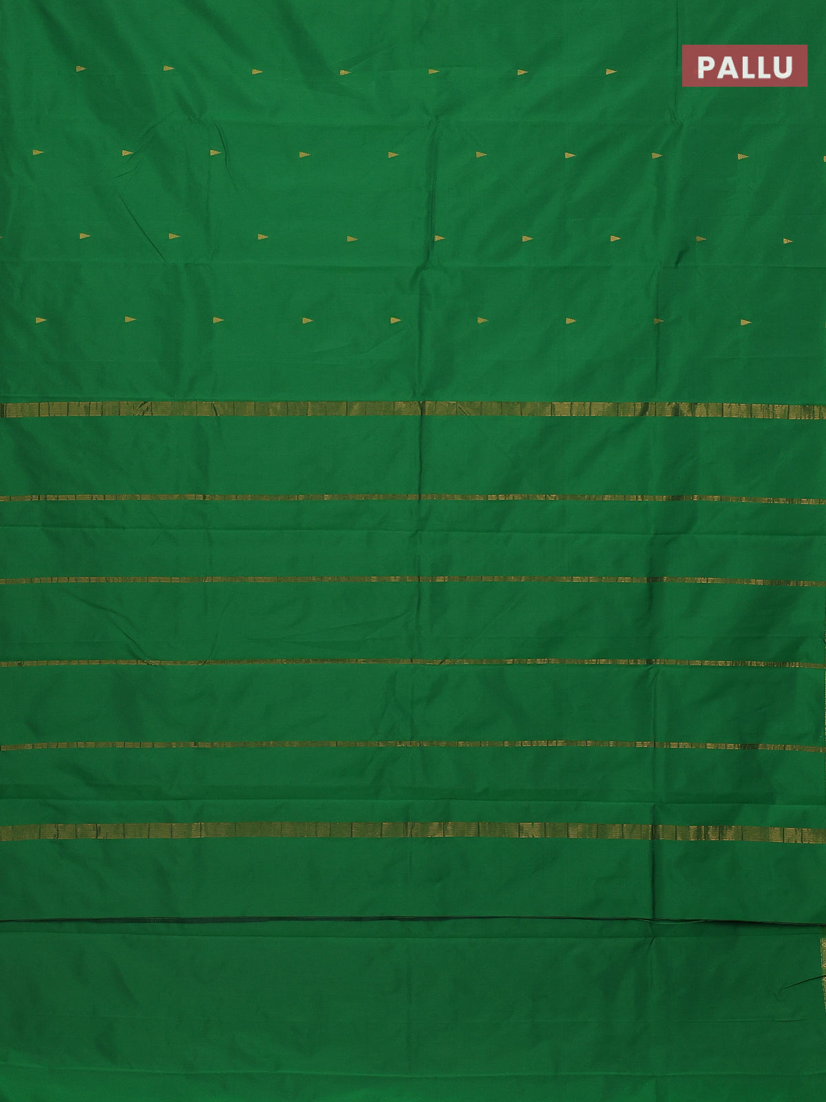 Arani semi silk saree green with zari woven temple buttas and zari woven border