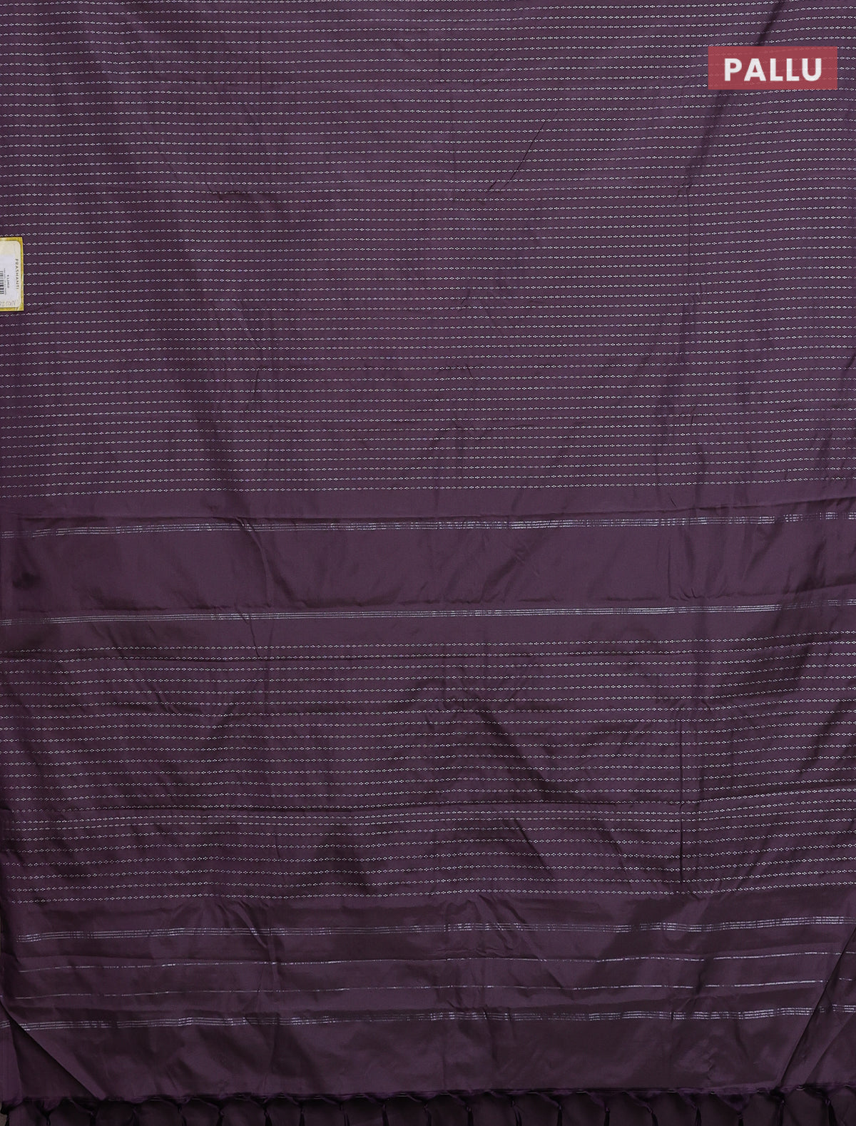 Arani semi silk saree jamun shade with allover silver zari weaves in borderless style
