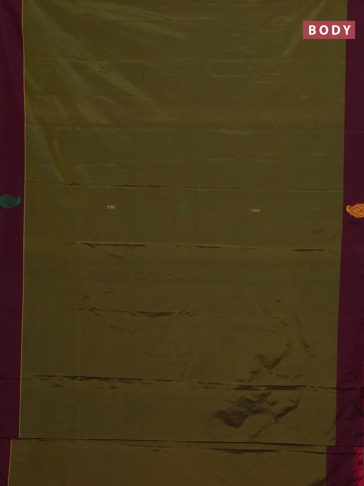 Arani semi silk saree mehendi green and dual shade of yellowish pink with thread woven buttas and thread woven butta border